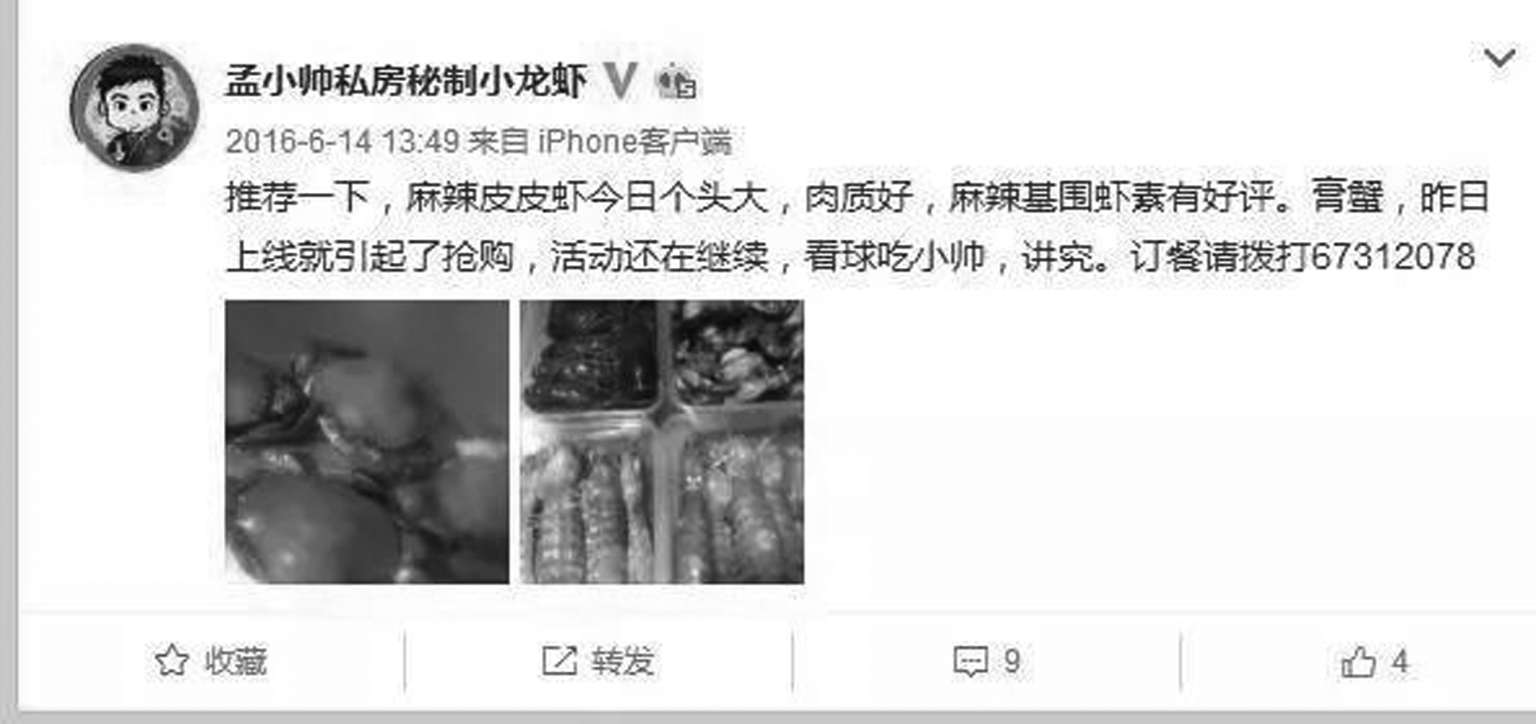 图2-10 微博号“孟小帅私房秘制小龙虾”