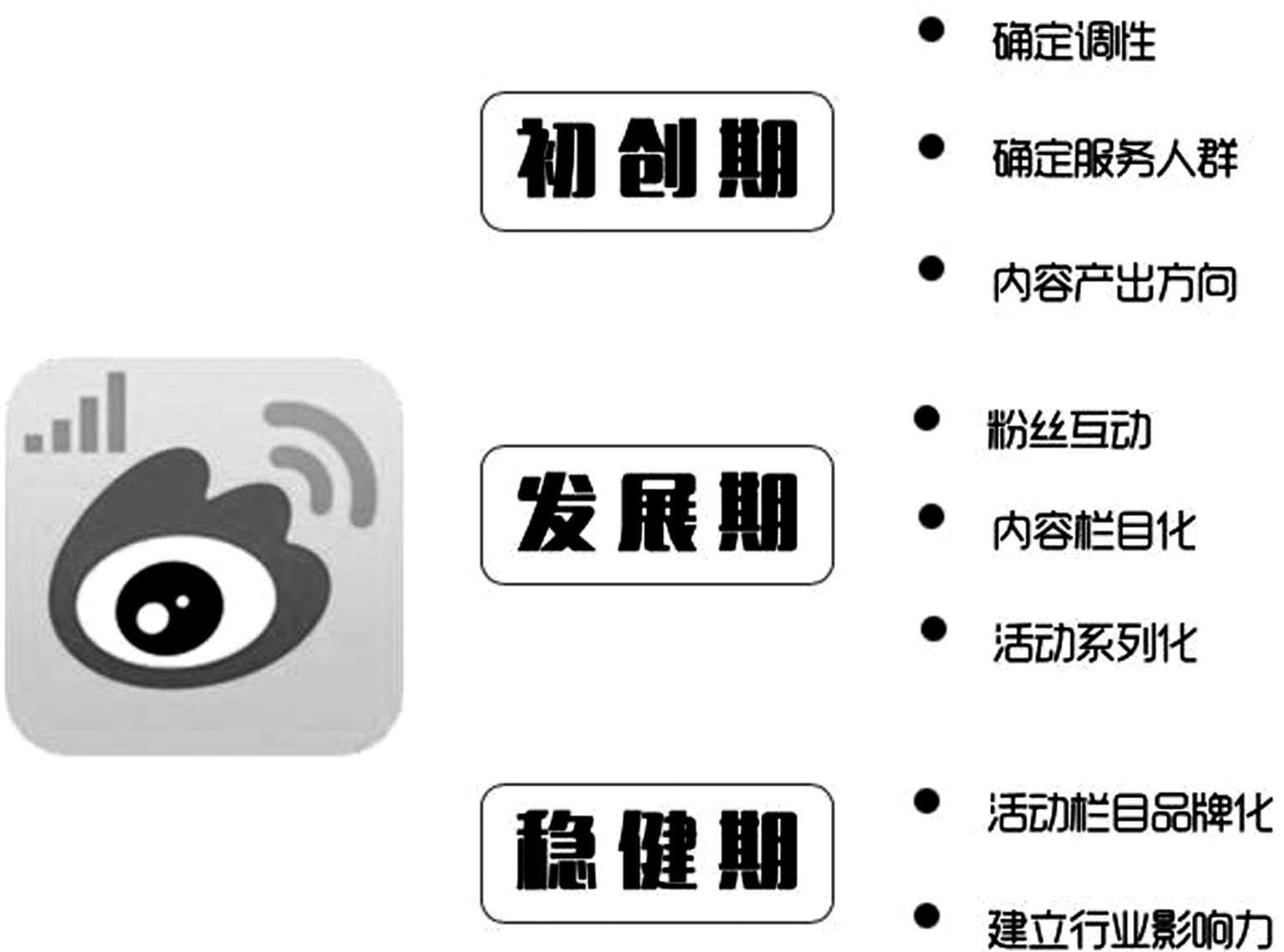 定位是布局的第一步(图2-12),一方面明确企业目前在微博渠道所处的阶段,是否有涉足?是不是进入了发展期?不同阶段的运营侧重点不同;另一方面明确企业微博的渠道定位,是做面向B端用户的内容,还是去影响C端消费者的想法?采用的是品牌推广策略,还是推销产品策略?切勿一味跟风导致两边都不讨好。