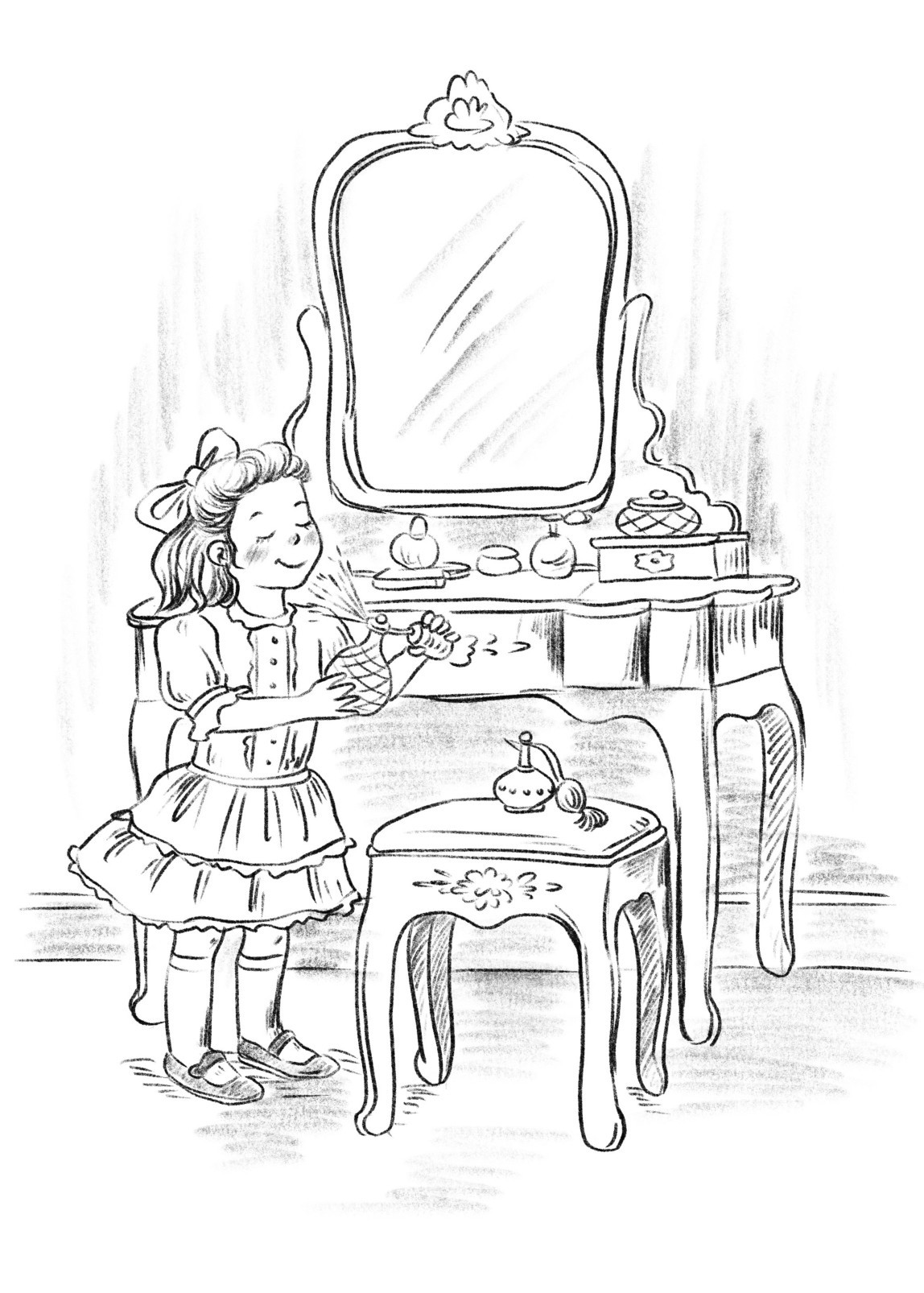 渐渐地,我懂得了很多周围发生的事情。五岁时,我学会了把从洗衣房拿回来的干净衣服叠起来放好,而且我还能辨别其中哪些是我自己的衣服。从母亲和姨母的梳妆打扮中,我能知道她们是要出门,并且总是会吵闹着要一起去。当家中有亲戚朋友来访时,家人总是会叫我出来见见他们。他们离开时,我会向他们挥手告别,我还模糊记得这种手势的意义。有一次,几位客人来拜访我的母亲,我感觉到了前门的开合和其他一些昭示着有客人光临的声音,于是我突发奇想,在大家反应过来之前冲上楼,去换上自己喜欢的会客的衣服。我模仿着其他人对镜贴花黄,往头发上抹油,在脸颊上扑粉,用发夹在头上别上一块面纱,遮住脸,一直垂到肩膀上。之后,我又在自己的小细腰间围上一条巨大的裙撑,它在背后摇摇晃晃的,几乎要超出裙子的褶边。我就带着这身装扮下楼去帮忙招待客人。