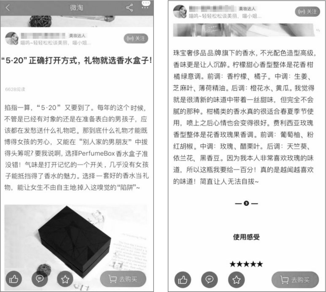在电商领域,深内容一般是指通过对某个产品或服务进行深度剖析和介绍,而非只用图片或简介展示产品或服务的内容。深内容可以让读者通过图文介绍、视频详解或者直播详解对产品的基本属性、特点、卖点等有详细、深入的了解。例如,电商达人创作的评测文、“种草”文、教学文等都是深内容。图1-18所示为淘宝达人创作的“种草”文示例。