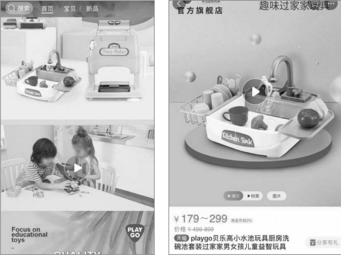 内容电商以其快速捕捉市场和用户变化的思维模式,快速地将短视频利用起来,主要用在产品展示、情景模拟、知识科普等情景。例如,店铺产品的主图从精致的图片升级成了短视频,将产品全方位地展示给用户,店铺也能用短视频进行产品和品牌宣传,提升店铺形象,如图1-7所示。