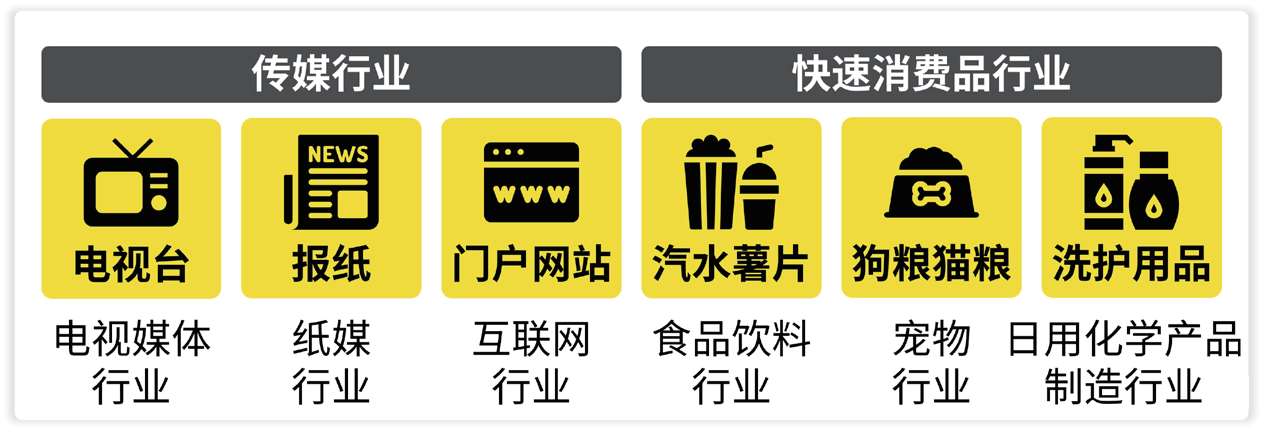 比如,横向来看(图1-1),汽水薯片、狗粮猫粮、洗护用品的经济活动不尽相同,既可以划分成 食品饮料行业、宠物行业、日用化学产品制造行业 ,也可以笼统地算作 快速消费品行业 。前面提到的传媒行业也是一个很好的例子。