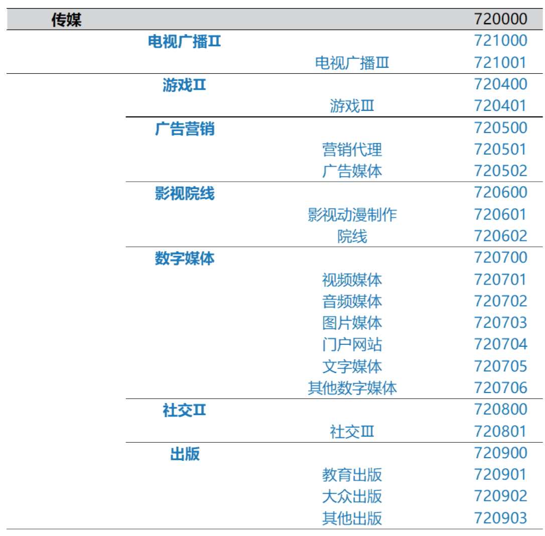需要留意的是,部分细分行业会带着罗马数字,比如“游戏Ⅱ”“游戏Ⅲ”分别代表二级分类和三级分类。这是因为不同层级的分类名称可能是一样的(因为没有进一步细分)。为了区分分类层级,所以在名称的后面加了罗马数字以示区别。