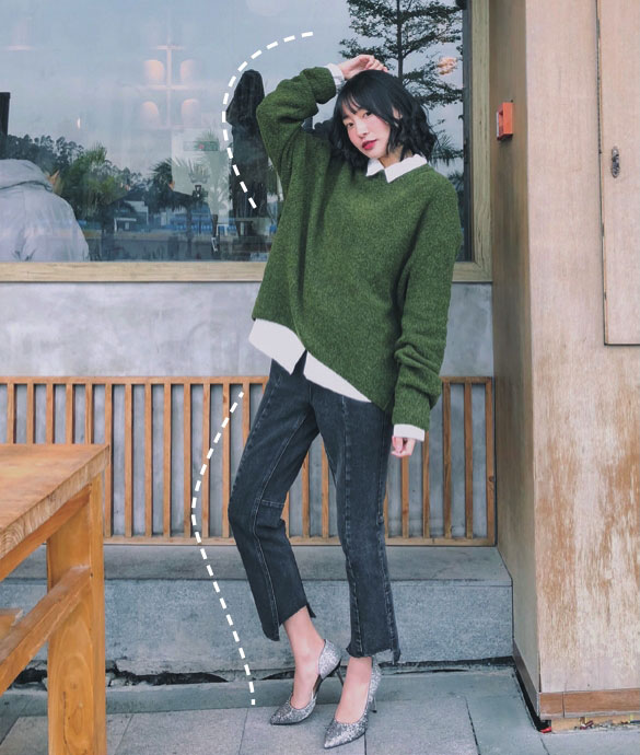一只手插兜,另一只手扶肩,重心移到左腿上,右腿朝镜头踢出,这样的姿势活泼又显腿长!