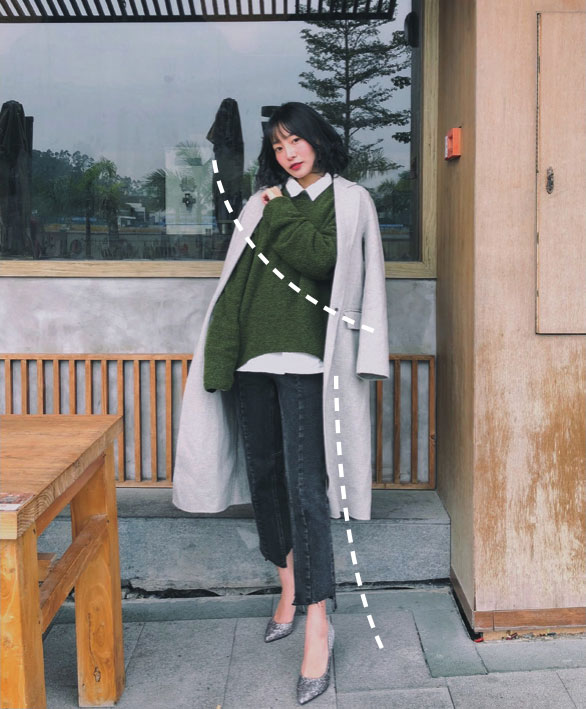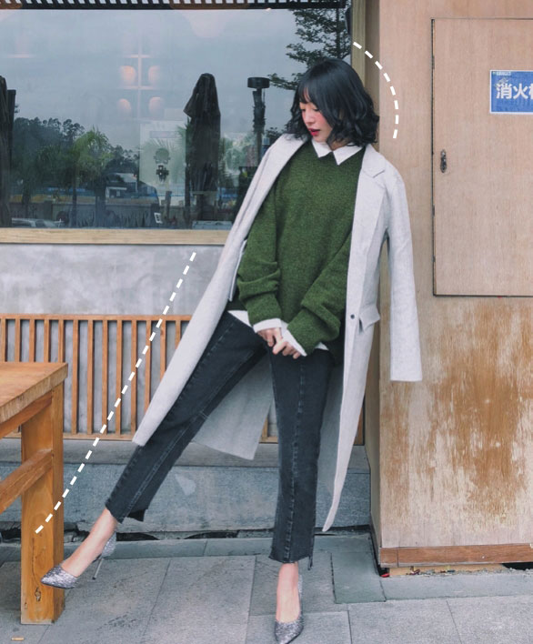 如果觉得穿着大衣拍照显得很臃肿,可以尝试把大衣披在身上,然后用一只手轻拉大衣的领子,这样拍照很显气质!