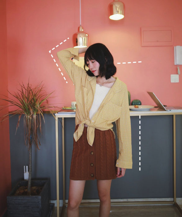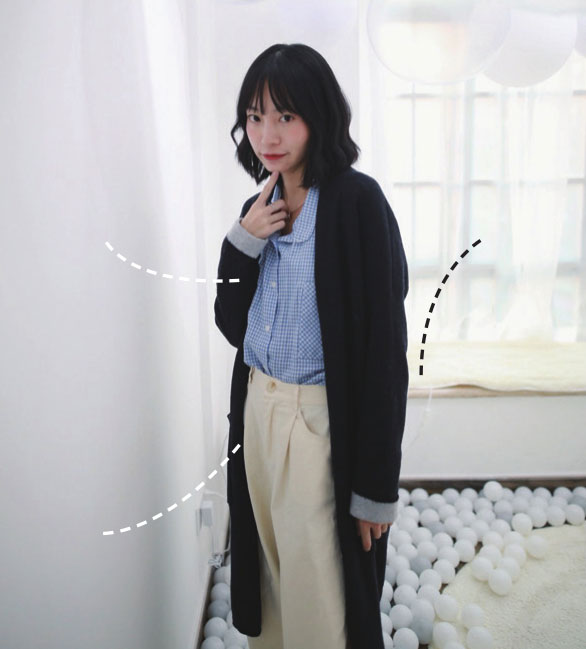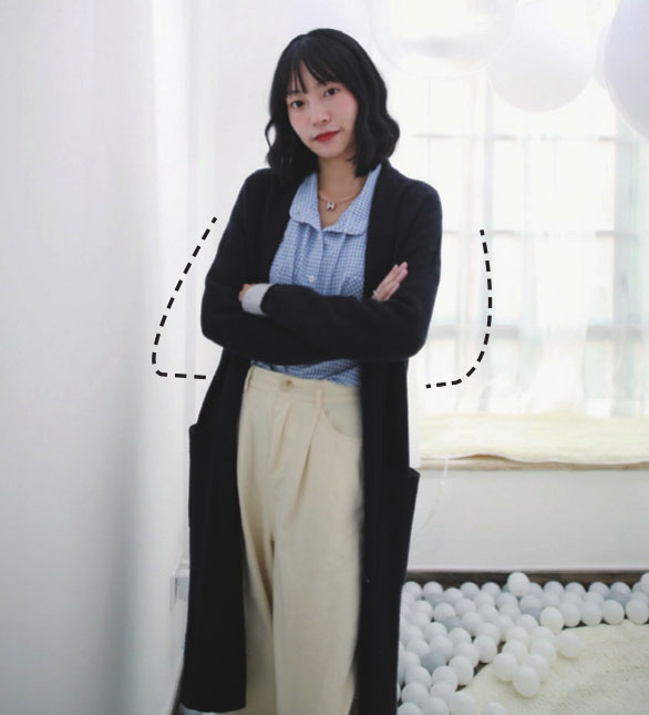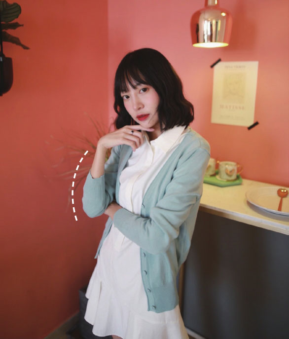 抱胸的时候,身体自然略往后倾斜,拍出来身材会更显修长。