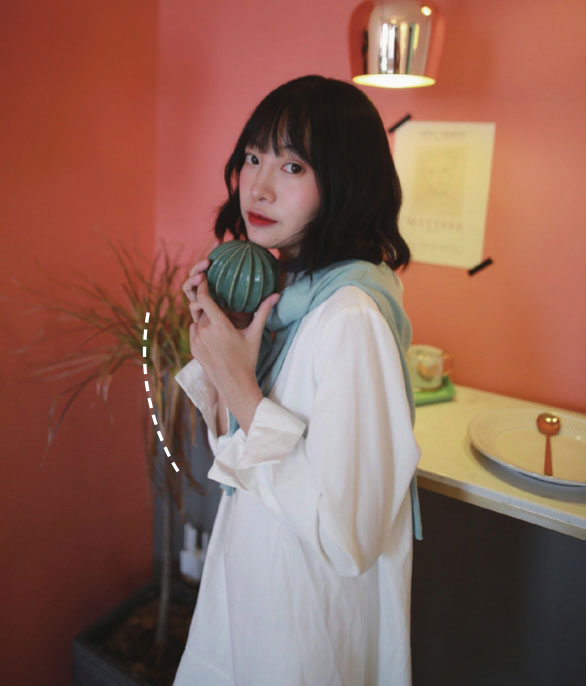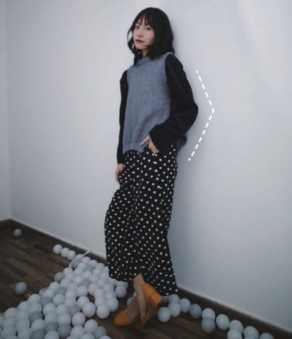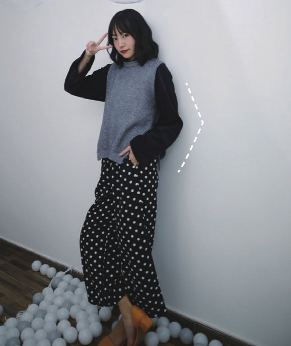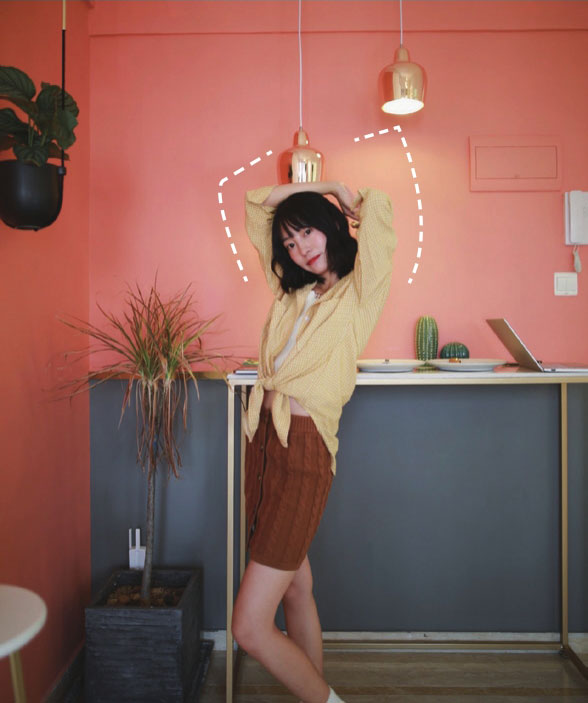 这个动作比较适合拍侧身的时候做,展现出你更美丽的那一侧脸吧!