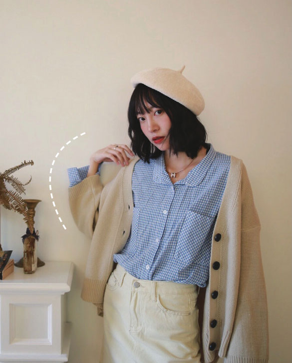 这个动作搭配微微耸肩,比较俏皮可爱。