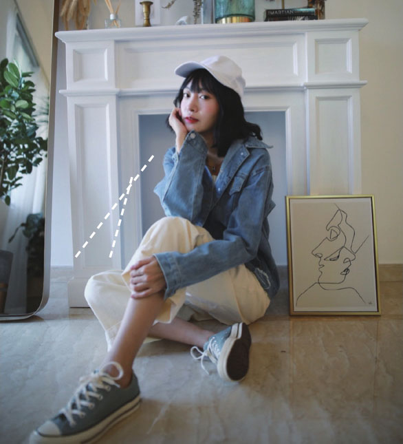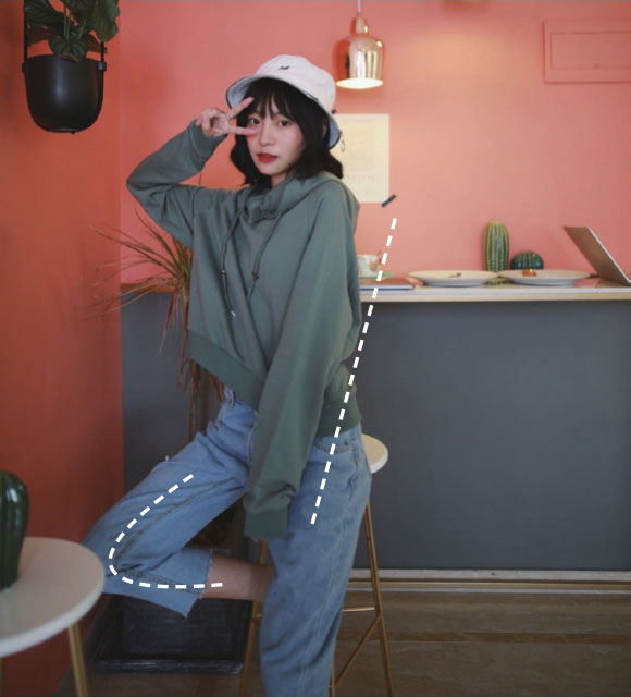 插兜可以让你的身体放松舒展10倍!所以外出拍摄时,最好穿上一件有兜的下装。插兜的时候,可以将重心放在一条腿上,另一条腿适当弯曲。总之让身体放松下来,拍出的照片才更自然。但是要记住,不要僵硬地两只手都插兜!