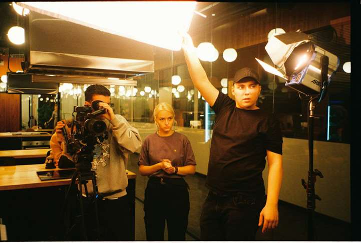在大多数情况下,摄像师需要与其他工作人员(如导演、演员、灯光师等)协作完成摄像工作。摄像师需要具备良好的沟通能力和团队协作精神,能够与其他人员紧密配合,共同完成拍摄任务。图1-1-11所示为摄像团队正在进行电视节目的拍摄,图1-1-12所示为灯光师正在调整灯光。