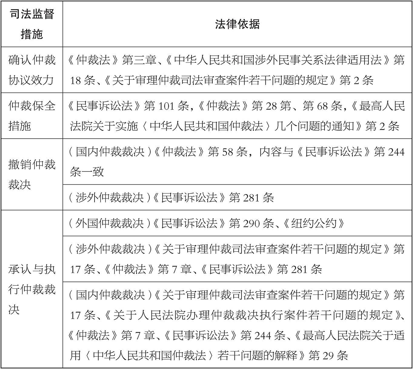 (5)及时针对仲裁创新调整司法监督措施。明确临时仲裁和投资仲裁的合法性与司法审查的相关法律依据。应对网络仲裁的飞速发展采取合理的司法审查标准。