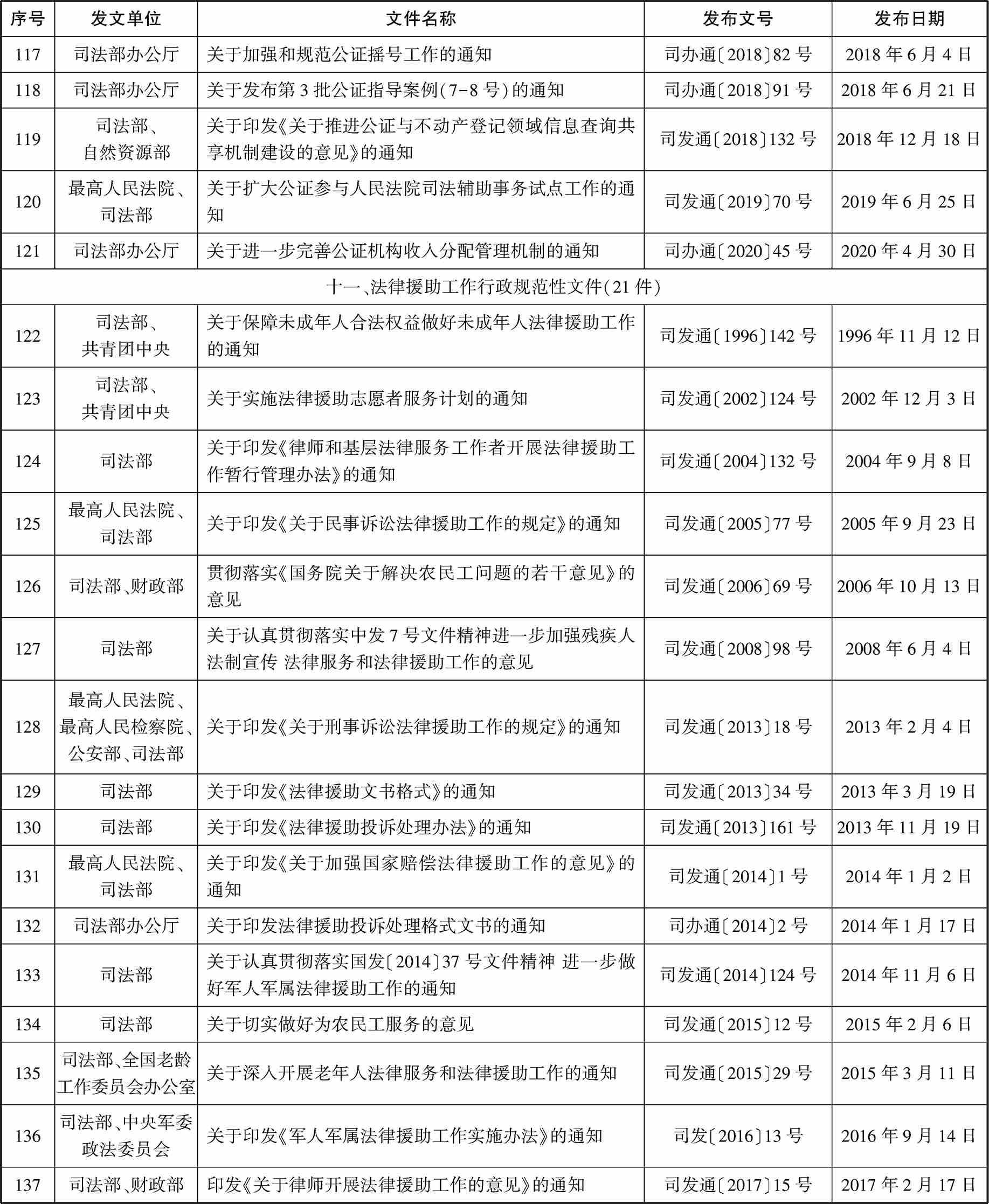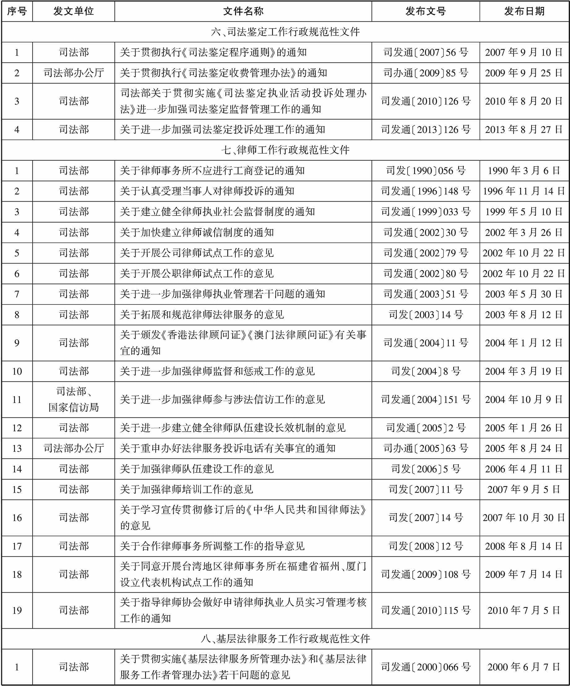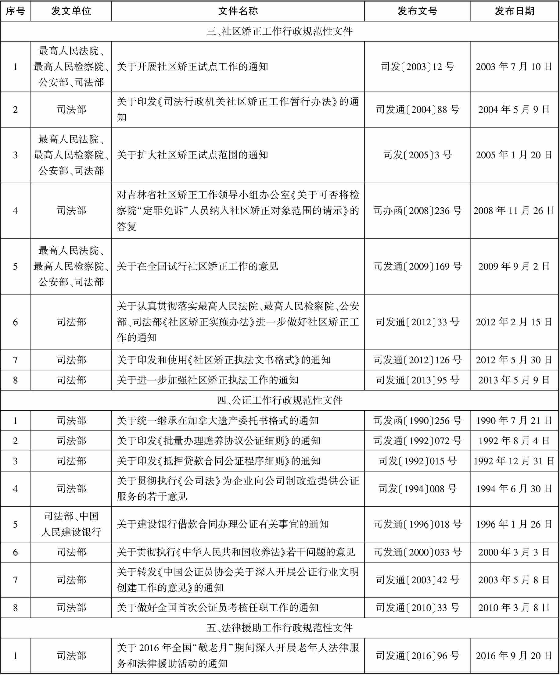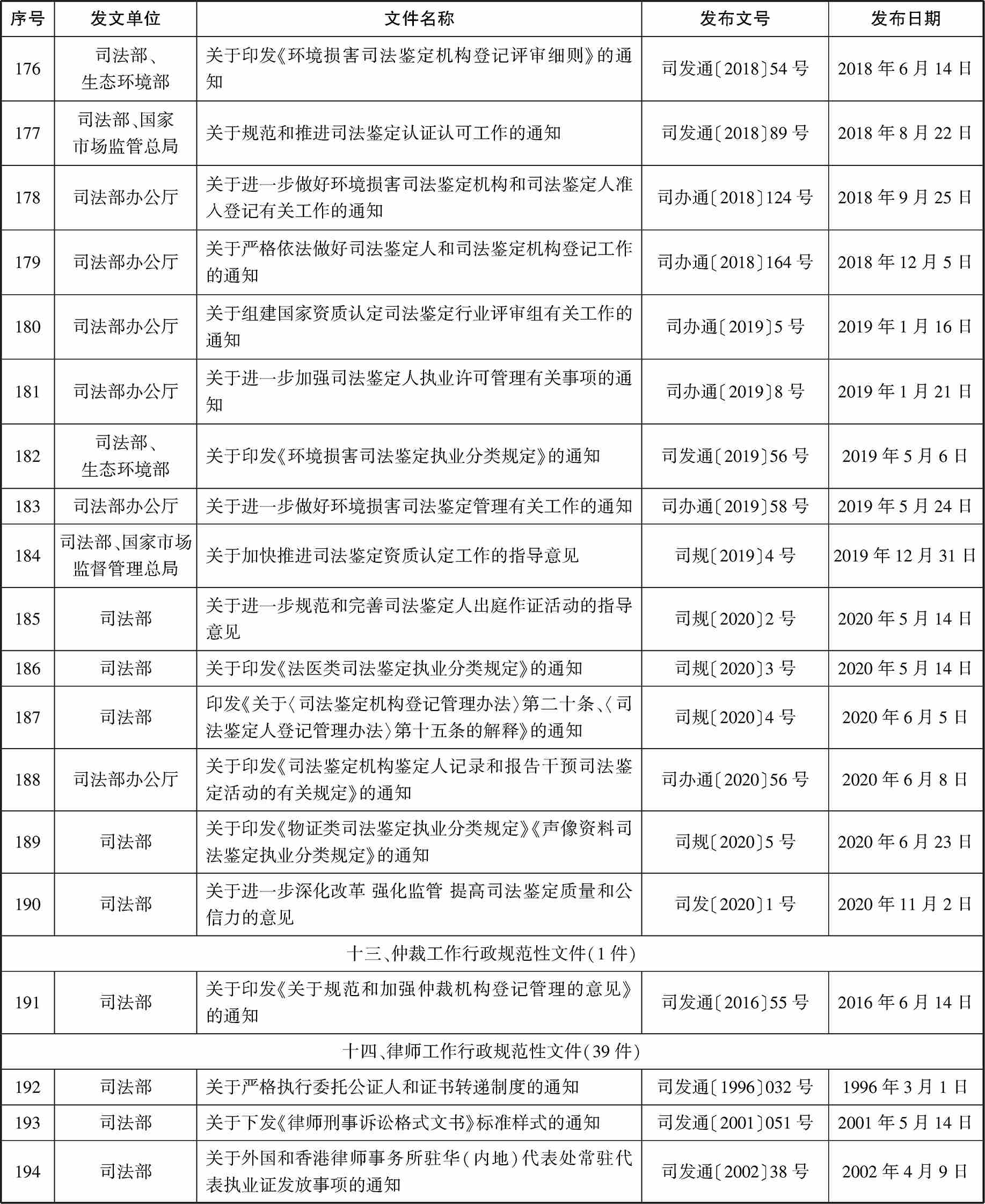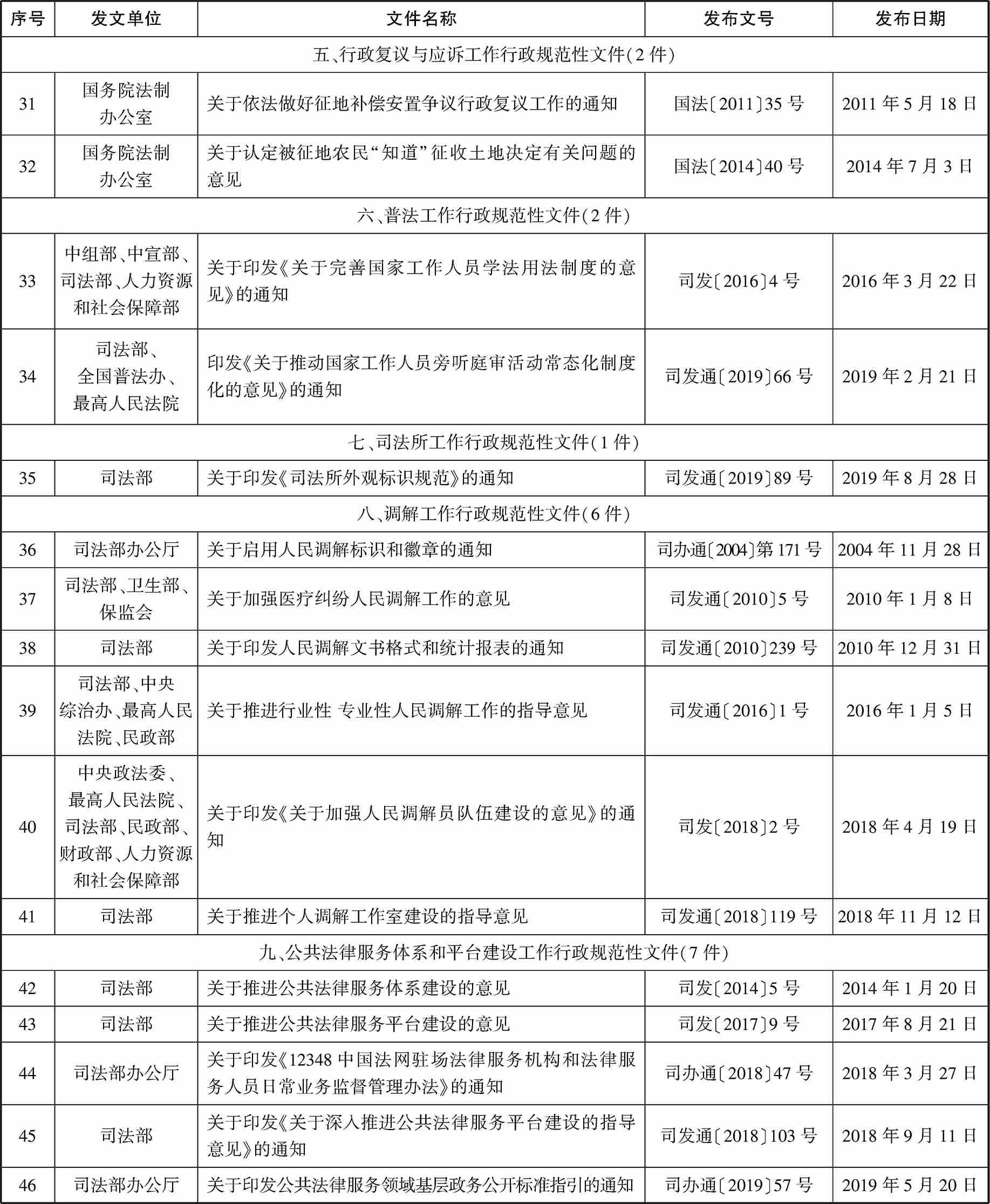 司法部现行有效行政规范性文件目录(截至2020年底)