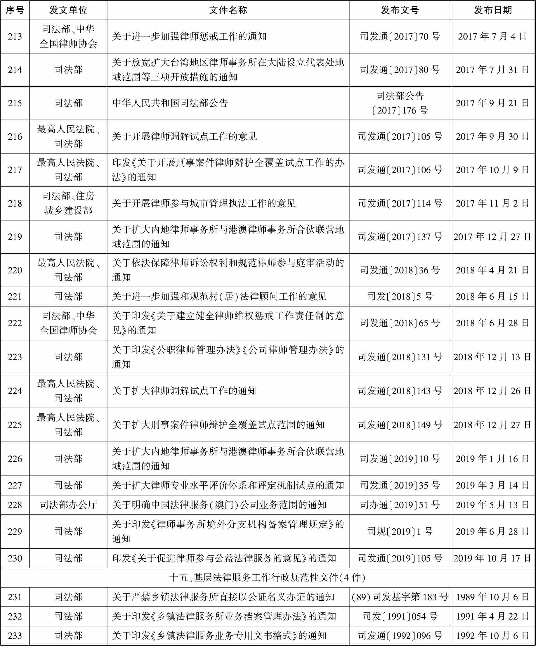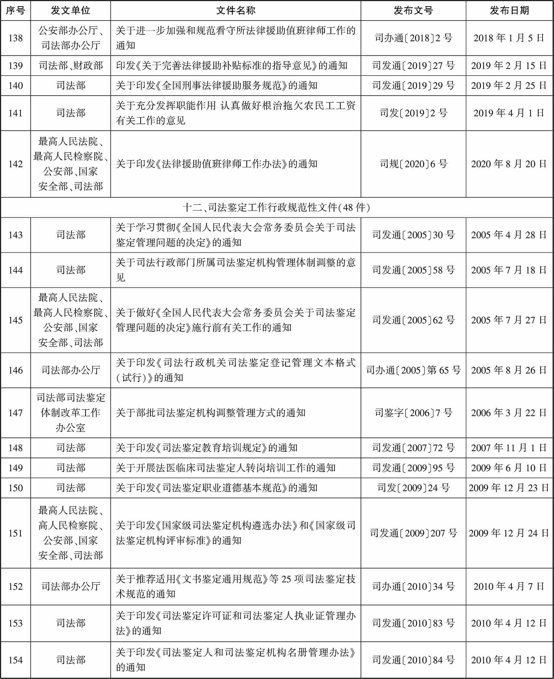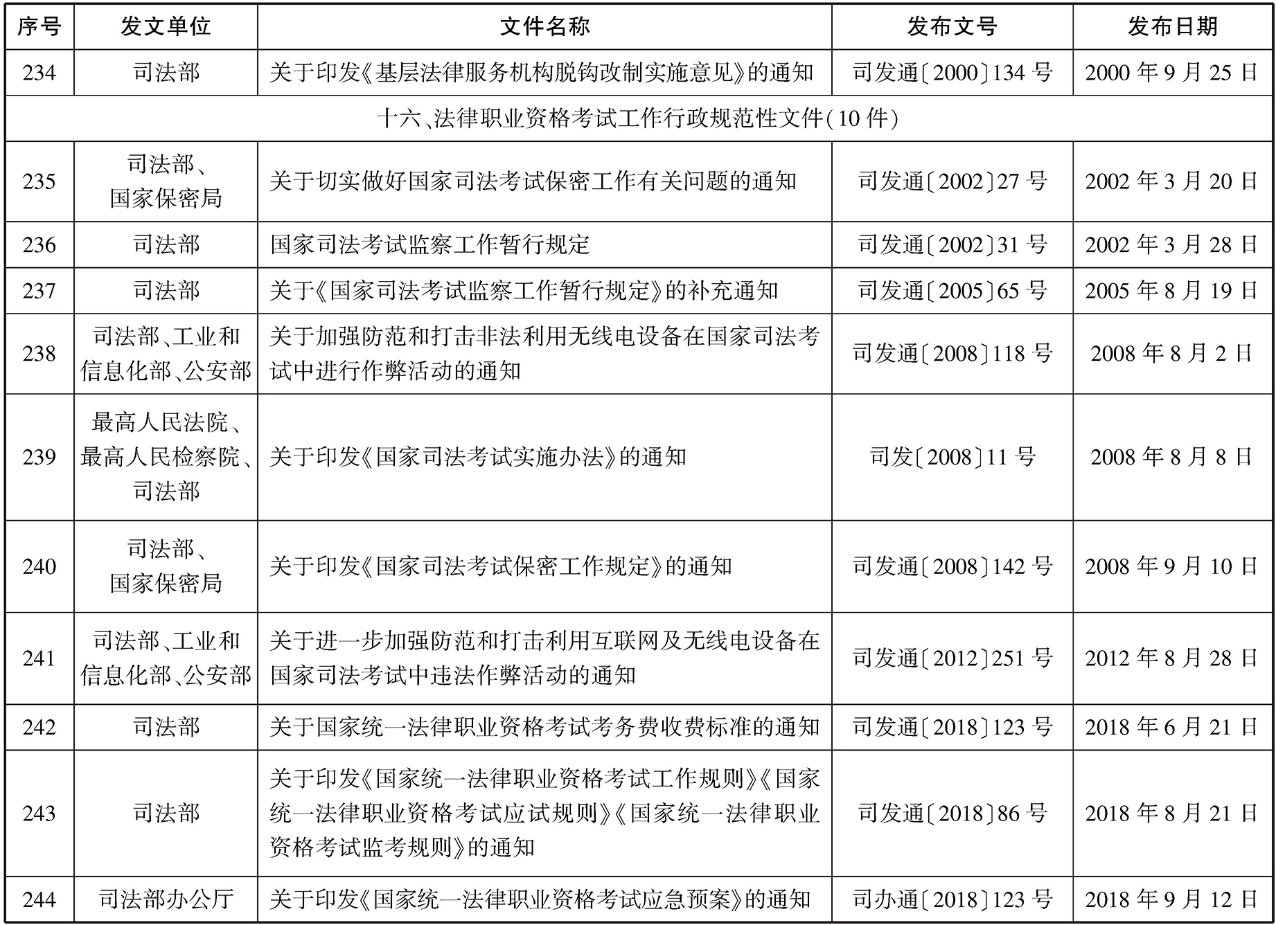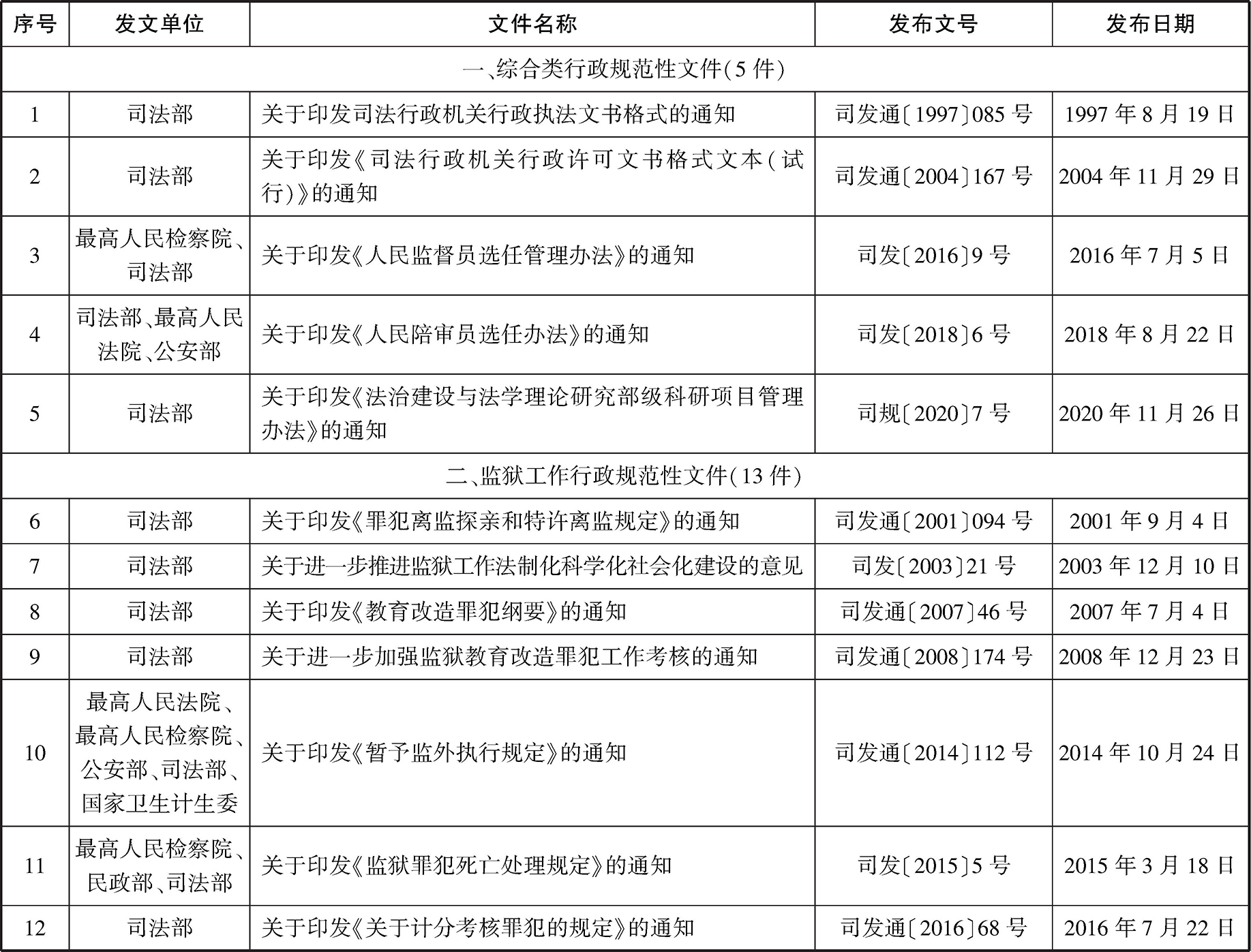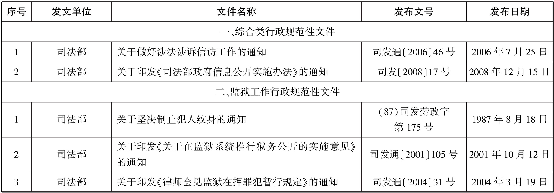 司法部现行有效行政规范性文件目录(截至2020年底)