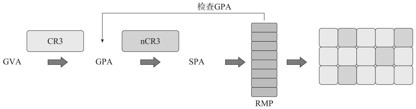 在SNP-VM环境里,所有GVA到GPA的映射是通过普通页表CR3寄存器实现的。页表会有一个C(enCryption)位来表示这个页面是加密私有内存还是非加密共享内存。在GPA通过嵌套CR3(Nested CR3,nCR3)转换为系统物理地址(System Physical Address,SPA)之后,CPU会查找RMP。RMP表记录了所有使用的4KiB页面的所有者(Owner)是VMM、AMD-SP还是特定的SMP-VM。只有通过RMP权限访问检查,内存的访问才被允许。同样,RMP自身是需要保护的,VMM不能直接修改RMP表,只能通过特殊命令来创建。