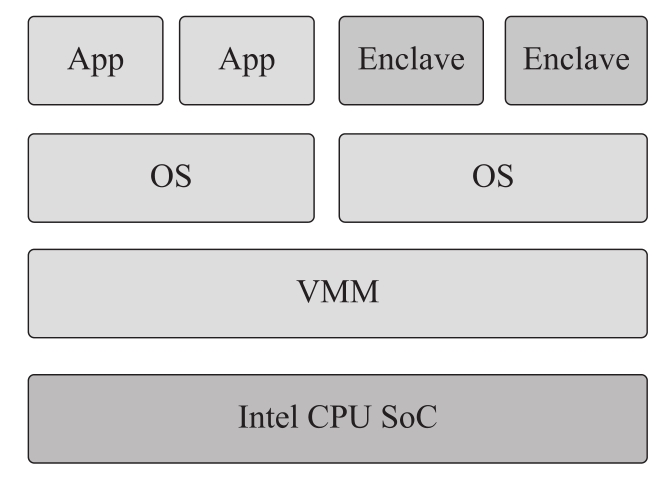 在系统设计的初期,操作系统在某种程度上扮演了TCB的角色,它负责隔离和保护每个用户进程,是每个用户进程的TCB。随着虚拟化技术的诞生,用户进程安全的依赖更加复杂,自底向上涉及以下模块: