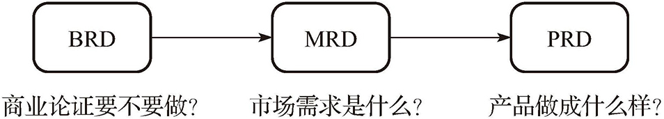 要做好测试立项工作,首先要理解BRD、MRD、PRD三者的概念及彼此之间的关系,可以用图2-2概括。