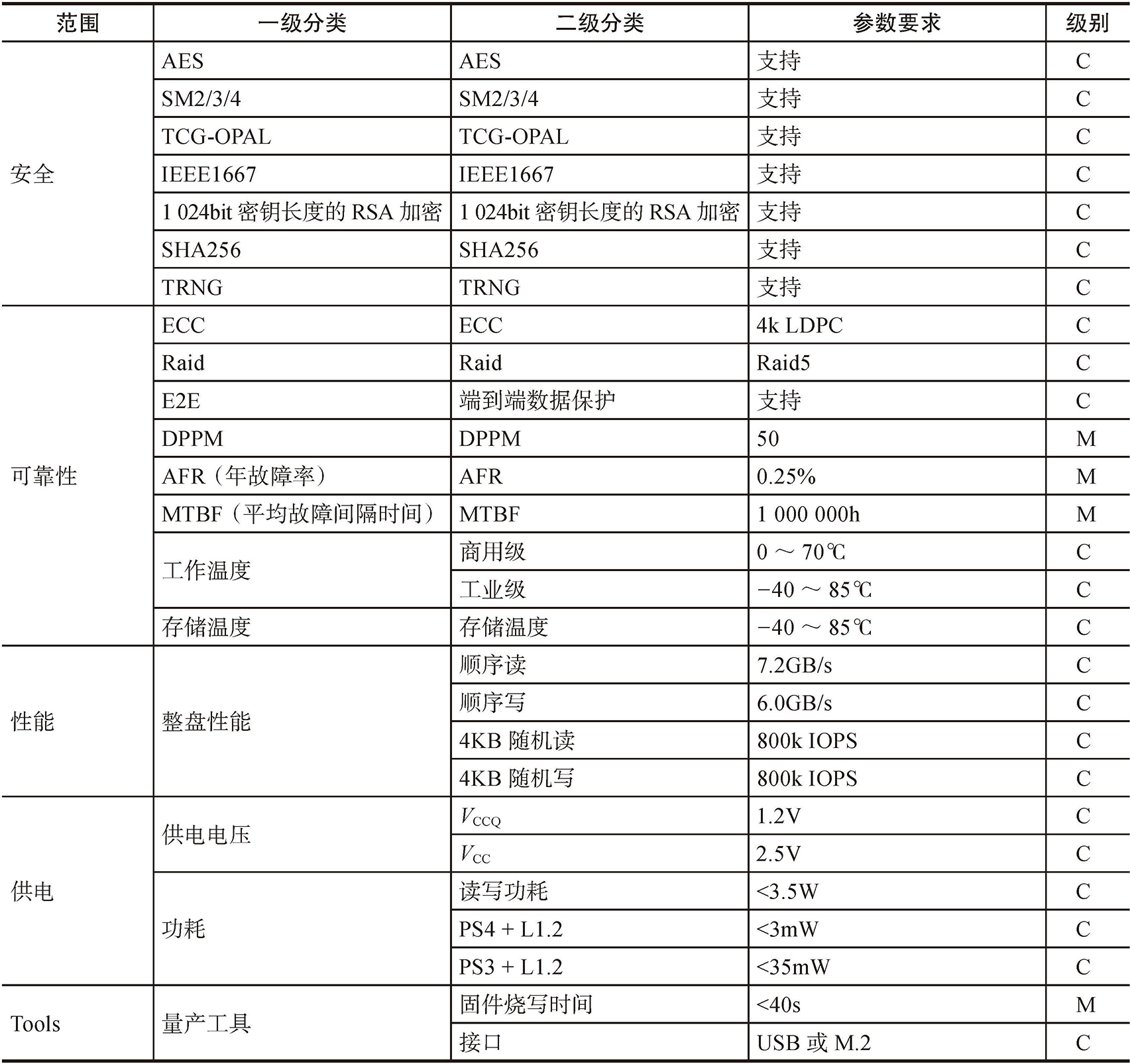 SSD的产品功能可以划分为C、M、B三个优先级。