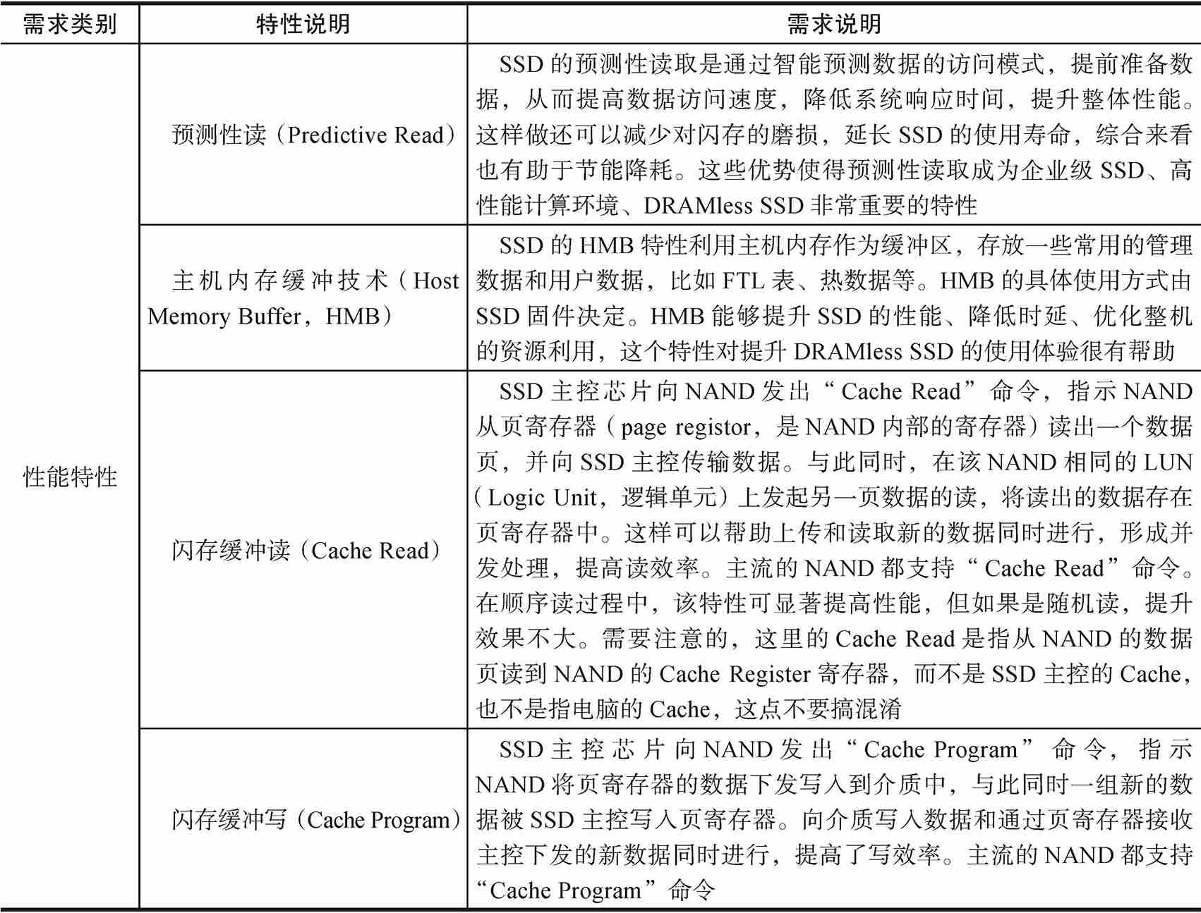 ● 固件特性及功能:闪存缓冲读(Cache Read)、闪存缓冲写(Cache Program)、预测性读(Predictive Read)等。