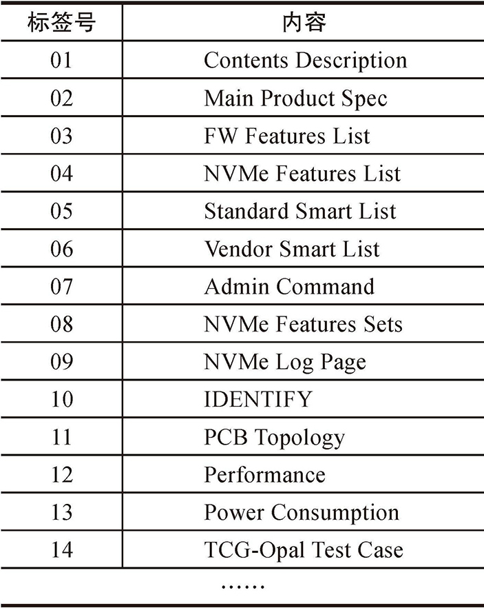 如果用Excel表管理一款SSD产品的PRD,可以将Excel中的每个sheet对应一类SSD特性,并在第一个sheet中给出索引。举例如表2-5所示。