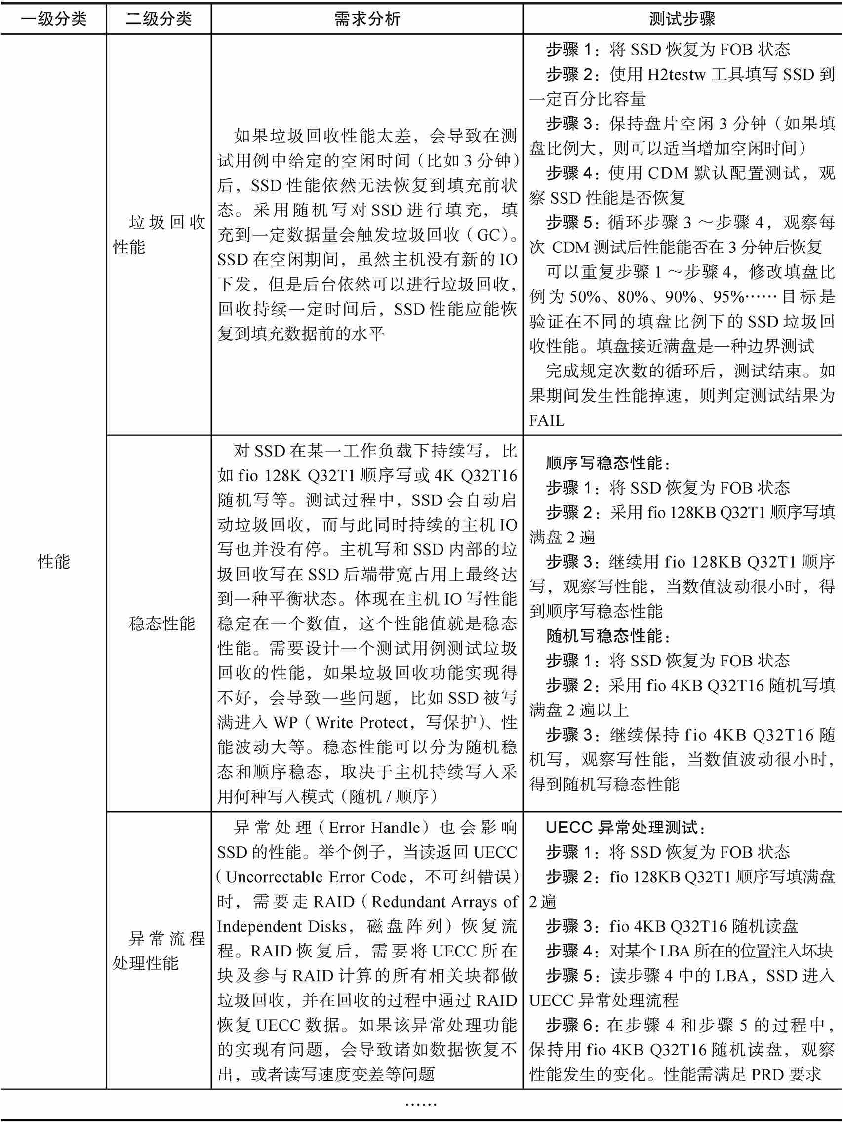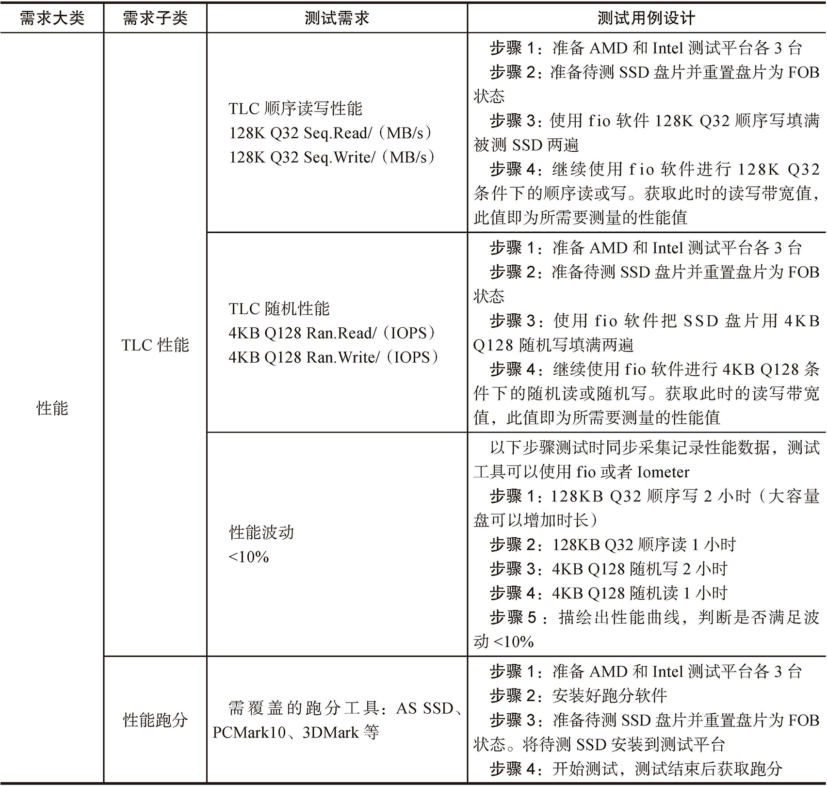 以SSD的性能测试为例,除了PRD给出的性能测试项目外,还可以补充表2-11所示的测试用例。