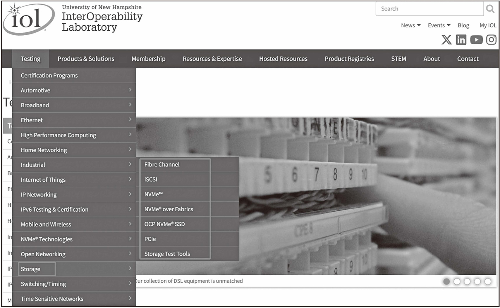 UNH-IOL(有时也简称为IOL)全称是University of New Hampshire Inter Operability Laboratory,是业界著名的公开实验室,提供多个领域的测试服务。UNH-IOL定义了NVMe 测试套件,包括NVMe一致性测试套件和NVMe互操作性测试套件。测试套件会跟着NVMe协议更新而持续更新,厂商可以自行下载使用,下载链接:https://www.iol.unh.edu/testing/storage/nvme。