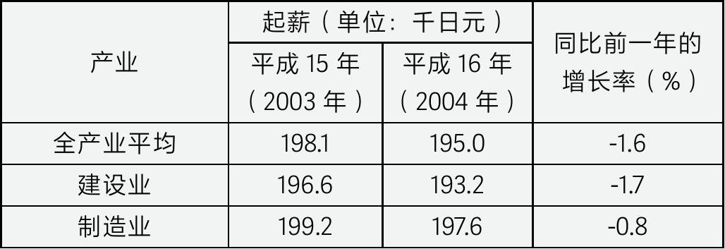 表一 平成15年,银行破产潮后各行业应届生起薪