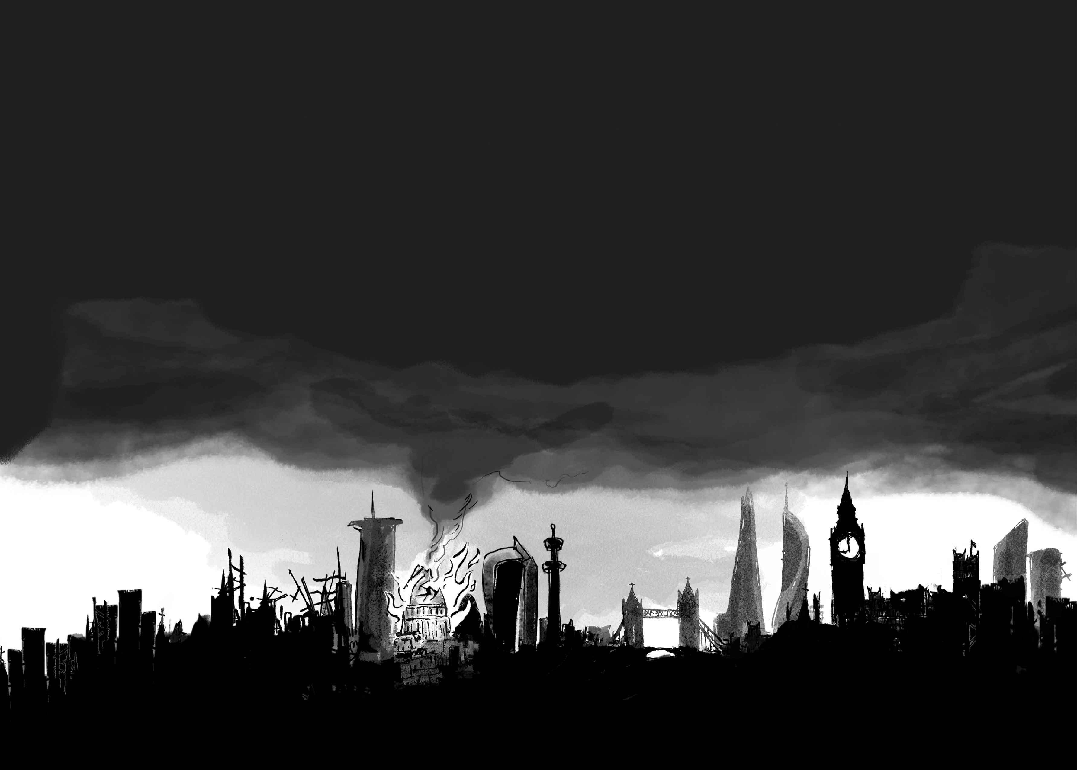阿尔弗雷德抖个不停。他很想移开目光,可是他做不到。每一天,伦敦城到处都在发生大大小小的攻击事件,不过这种惨重程度的爆炸实属少见。他看着窗外凋敝的场景,手掌紧紧贴在冰凉的厚玻璃上。