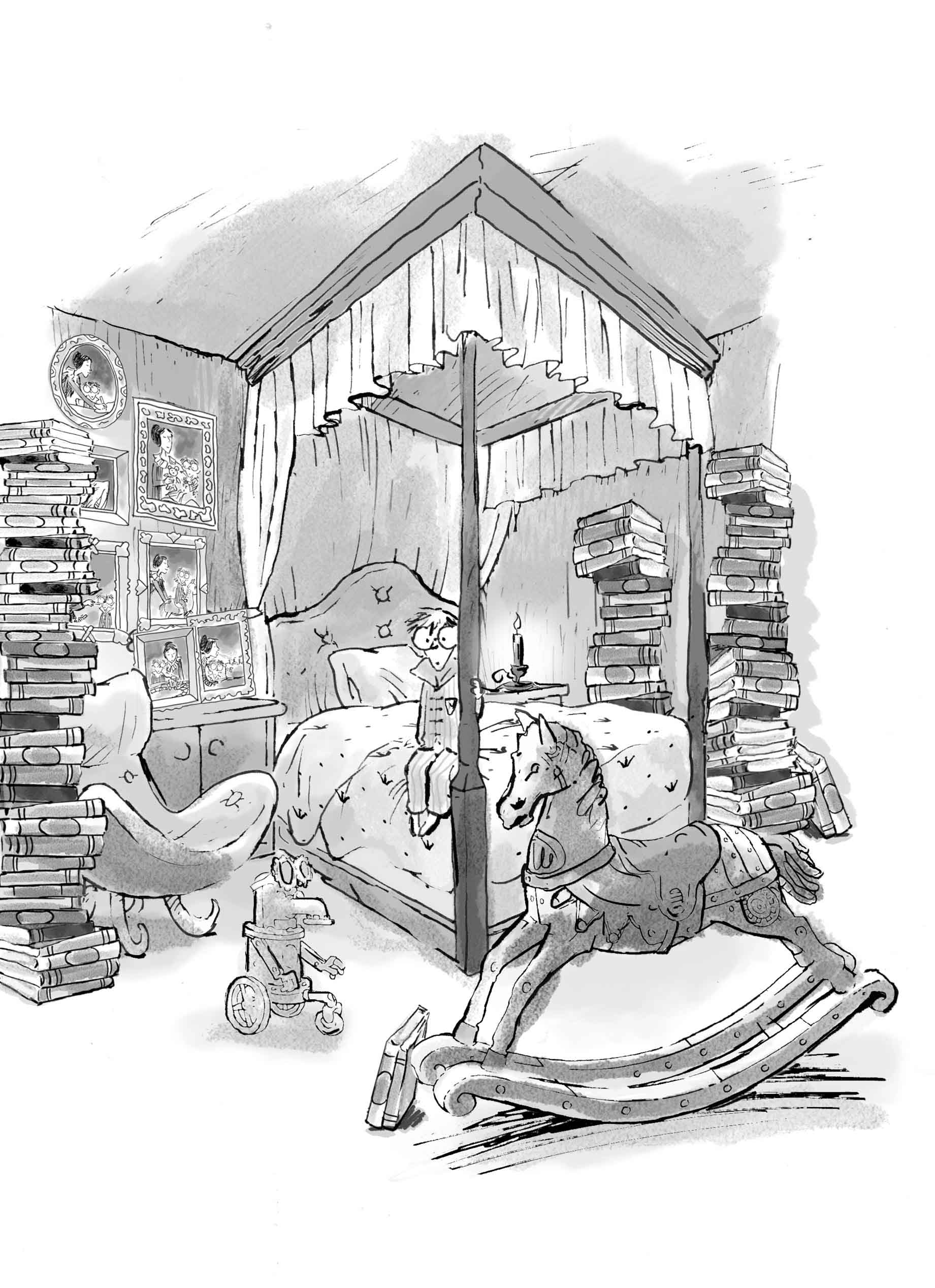 白金汉宫原本繁华辉煌,现在却只剩满目凄凉。地毯早就磨坏了,墙纸也粘不牢,但放眼全国,这地方还是独一无二。阿尔弗雷德王子的卧室里满是古董。他穿着丝绸睡衣,睡在四角支着柱子的大床上,尽管他的床总是嘎吱嘎吱地叫,他的睡衣也满是破洞。