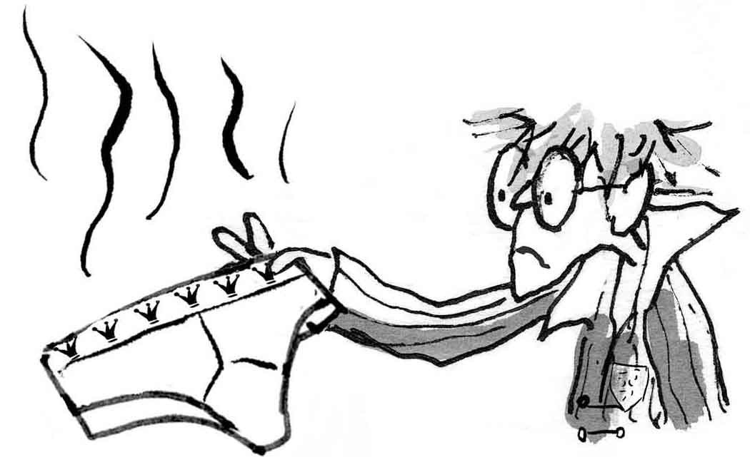 八爪管家根本没有长脑子,说出的话完全是答非所问。话音刚落,它便把一条脏兮兮的肥大男士内裤甩向阿尔弗雷德。这肯定是什么大块头老头子的内裤。