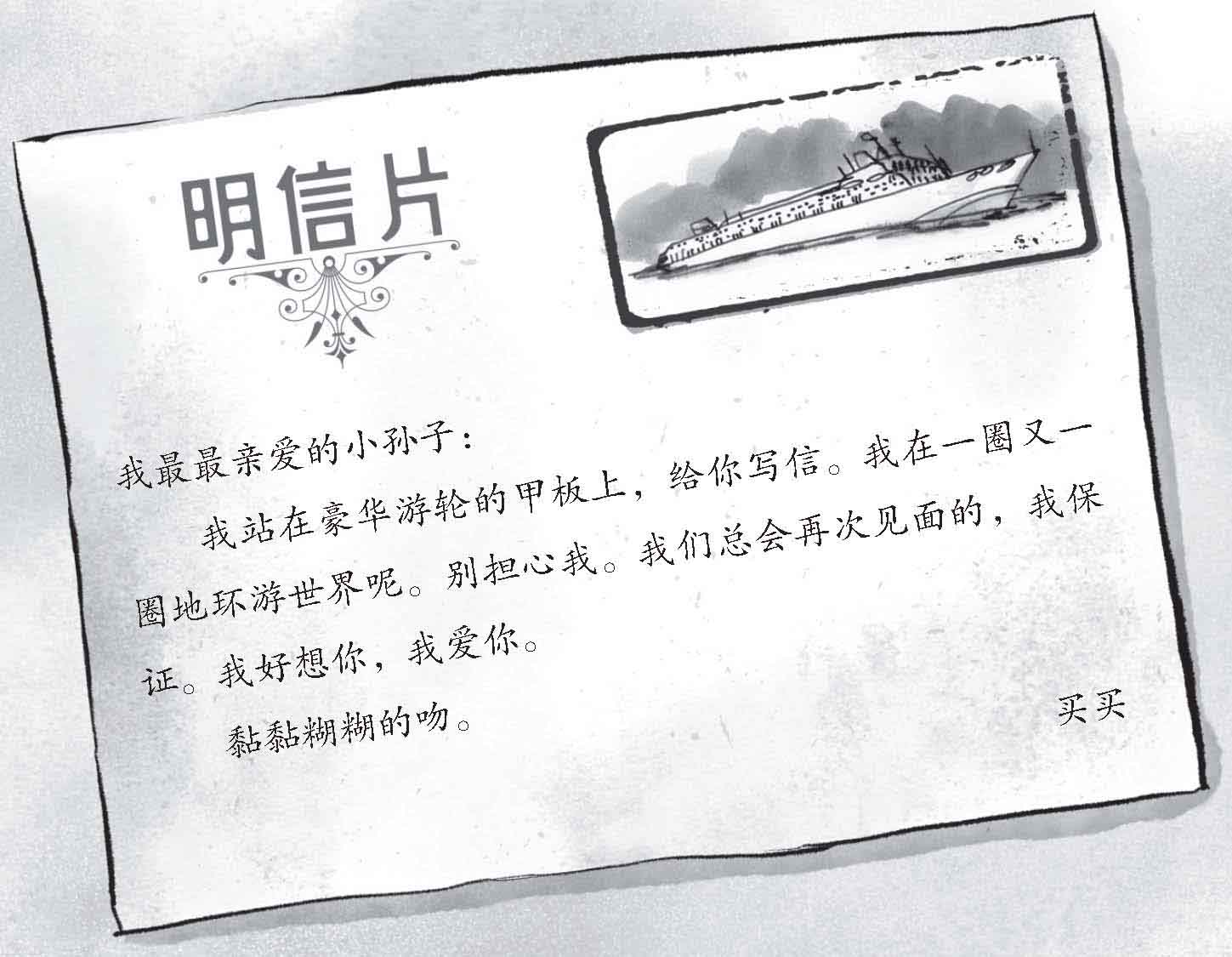 一天夜里,阿尔弗雷德的奶奶莫名其妙地消失了。从此以后,母亲总是以“买买”的名义给他写明信片。“买买”就是老王后,她是阿尔弗雷德爷爷的遗孀,阿尔弗雷德特别喜欢她。他总是叫她“买买”,因为他牙牙学语的时候,根本就发不出“奶奶”的音。