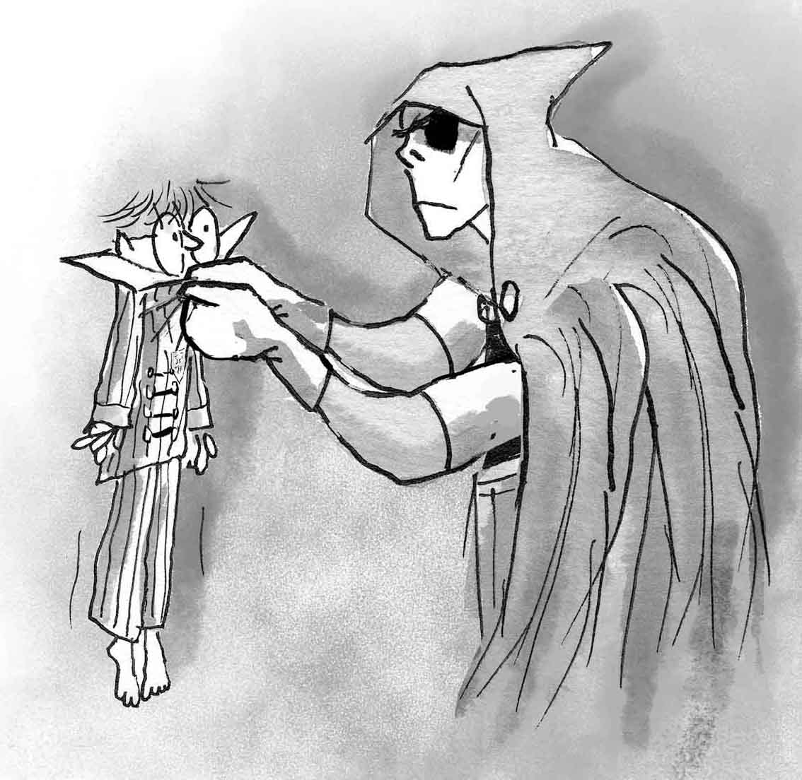 猝不及防,他猛地倒吸一口凉气,甚至忘了要发出惊呼声。一双戴着手套的大手抓住了他。阿尔弗雷德转过身去。不知什么时候,一名卫兵走到了他的背后。这名卫兵也和其他卫兵一样,一声不吭、轻而易举地就把阿尔弗雷德从地上拎起来,往屋里拽。