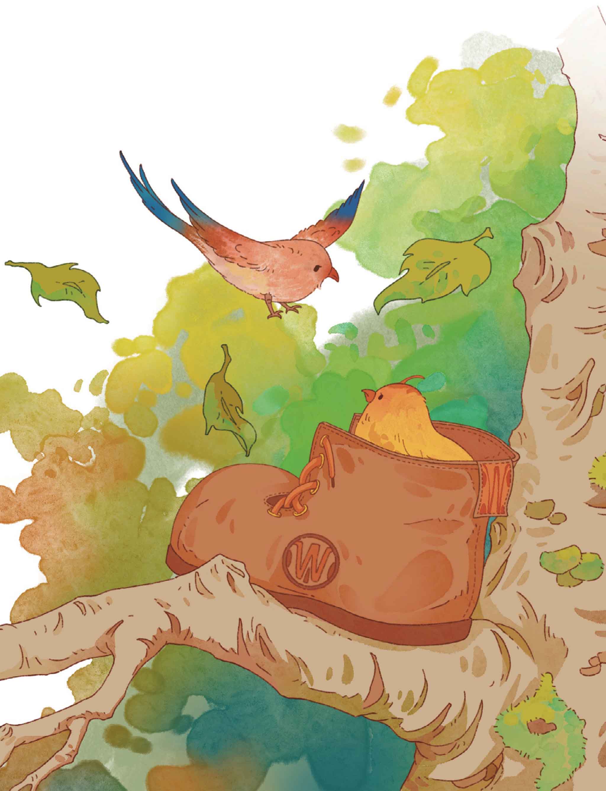 夏天过去了,我挂念着那只鞋子和鞋子里的小鸟。我爬上树,那只鞋仍安放在枝丫上。鸟儿已飞走了。鞋子里铺着松软的干草,草上有一根彩色的羽毛。