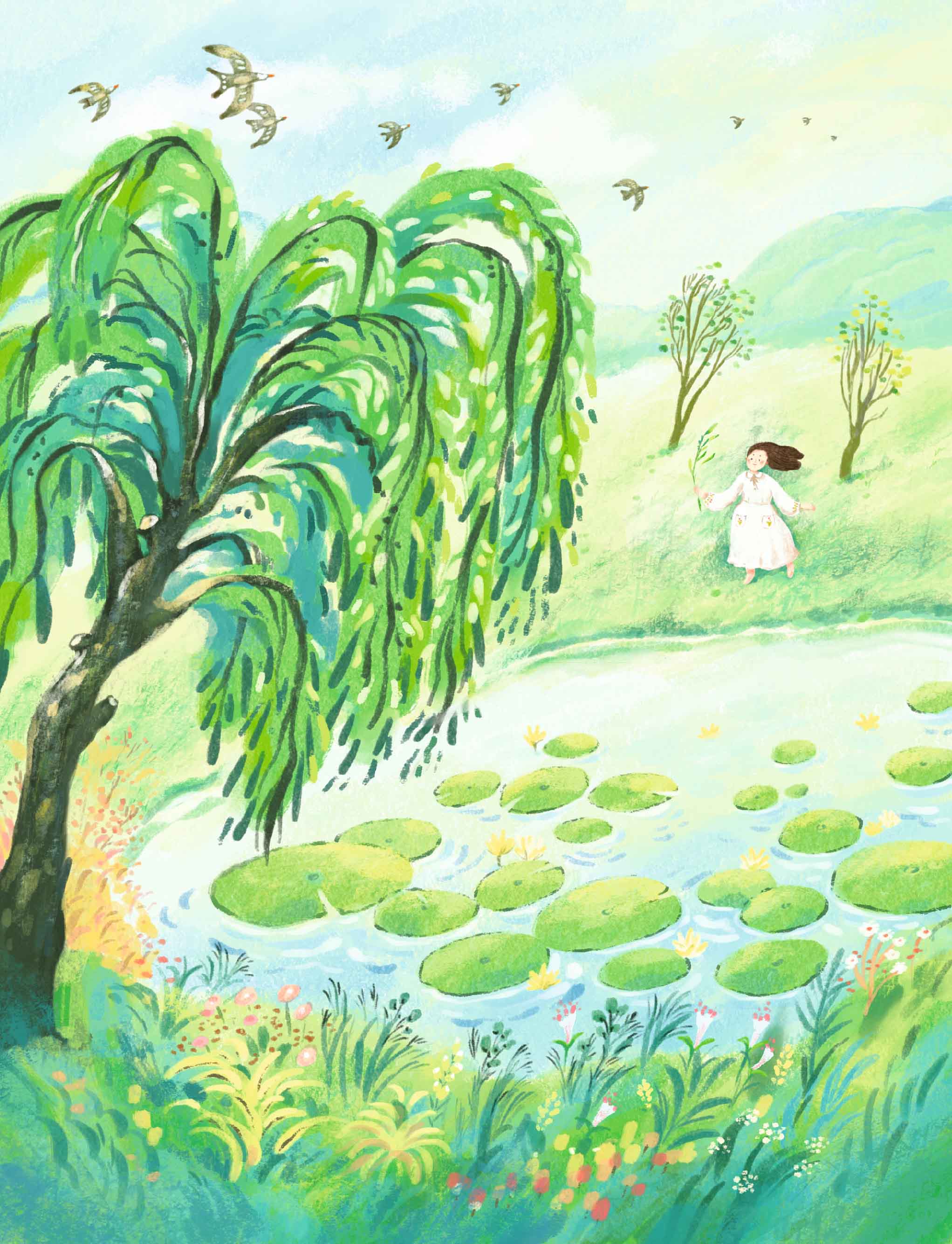 花喜欢它,草喜欢它,树也喜欢它,它们在池塘周围高高兴兴地生长着。