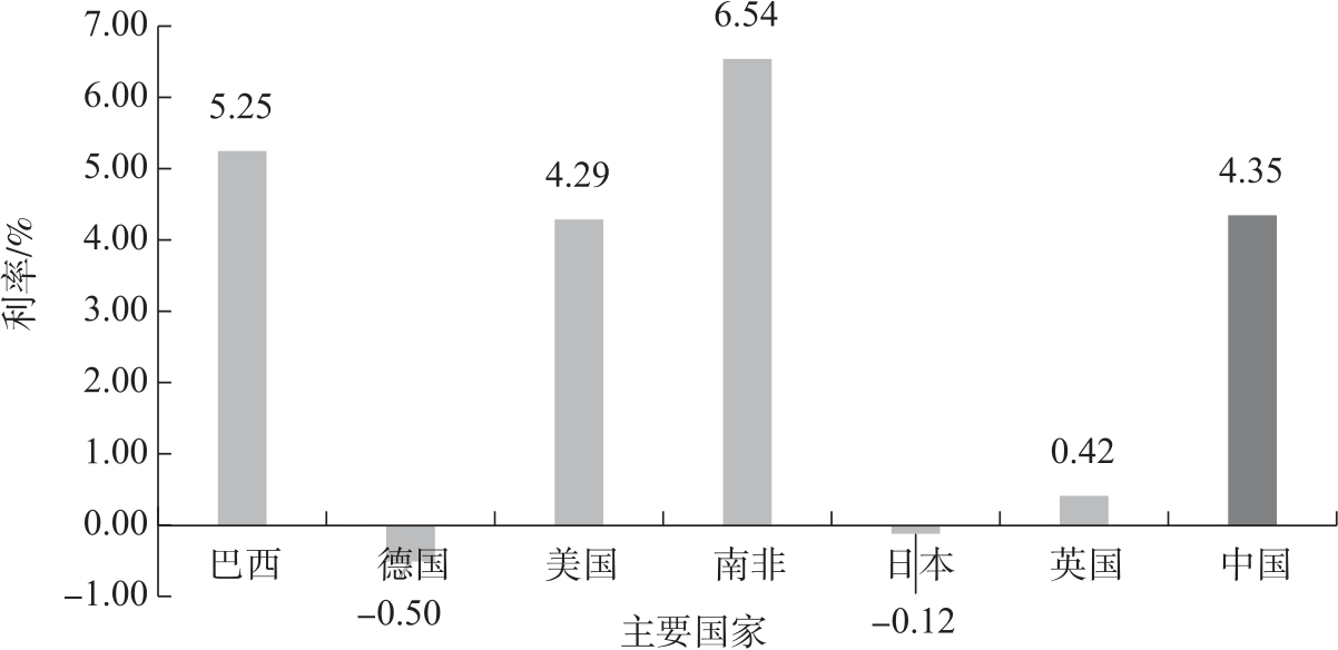 同时期世界主要国家年平均贷款利率水平:美国4.29%、英国0.42%、德国-0.50%、日本-0.12%、南非6.54%、巴西5.25%,从中可以看出,近年中国企业的融资利率仍然高于世界主要发达国家(图1-2)。