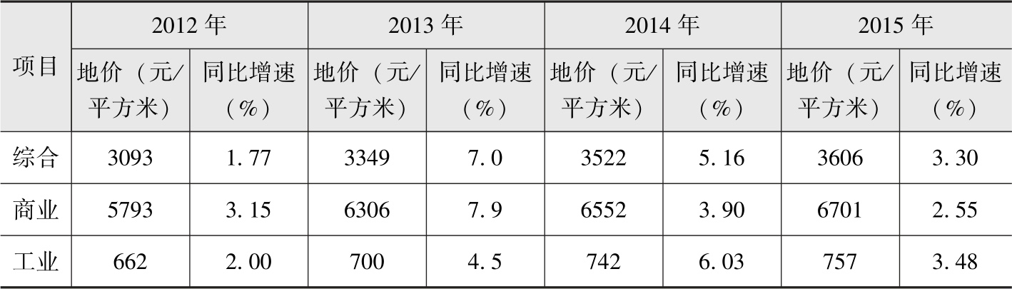 数据来源:根据历年《全国主要城市地价状况分析报告》整理。