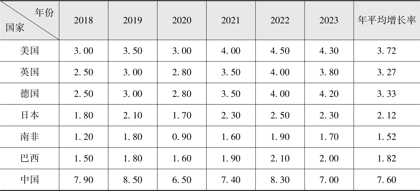 表1-1 2018—2023年世界主要国家企业用工成本年增长率 (单位:%)