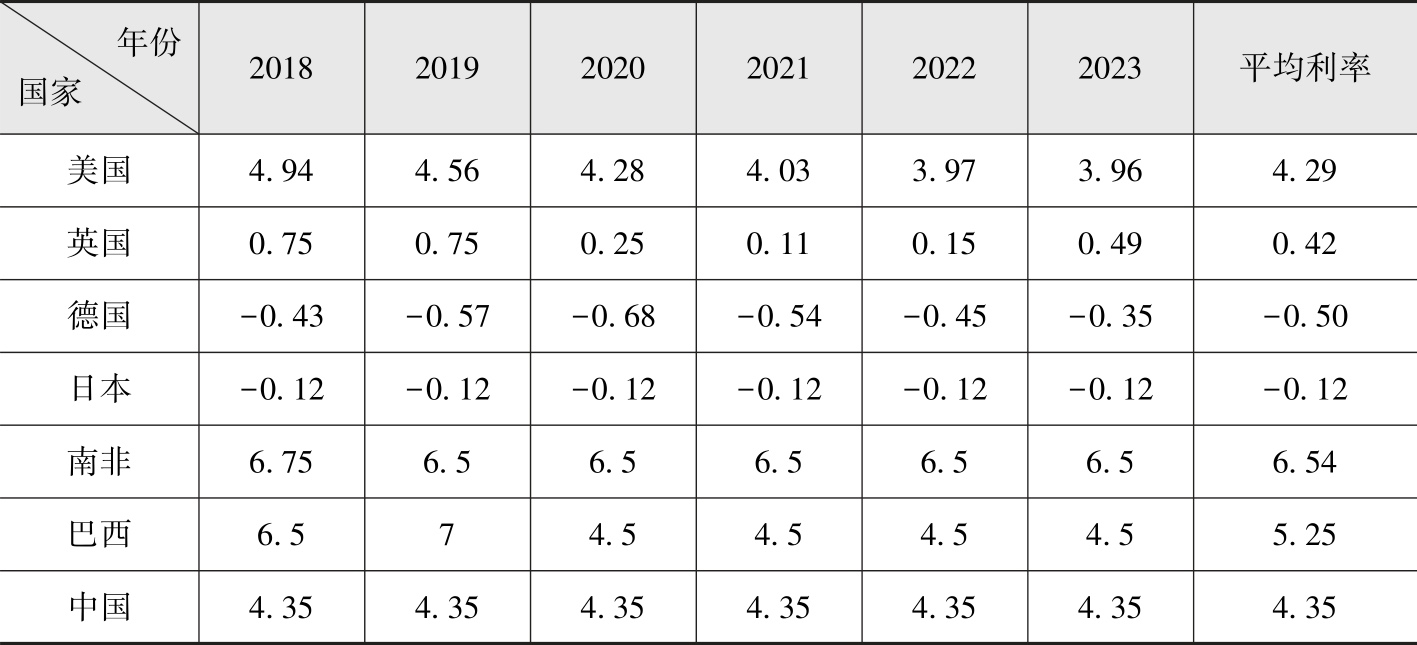 表1-2 2018—2023年主要国家一年期贷款基准利率 (单位:%)