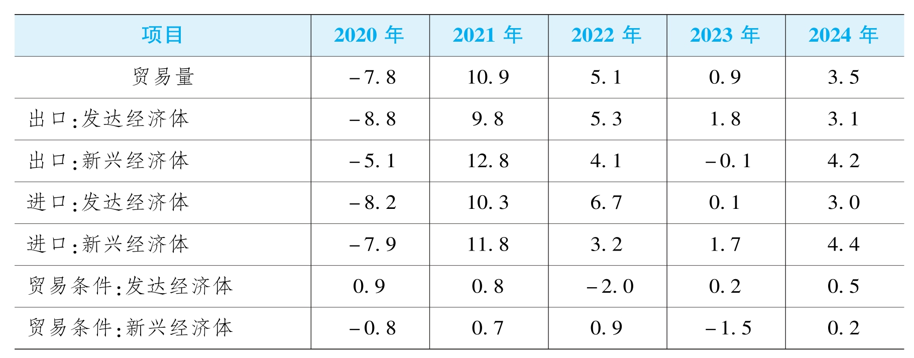 表1-2 2020年以来世界范围商品和服务贸易的增长情况 (%)