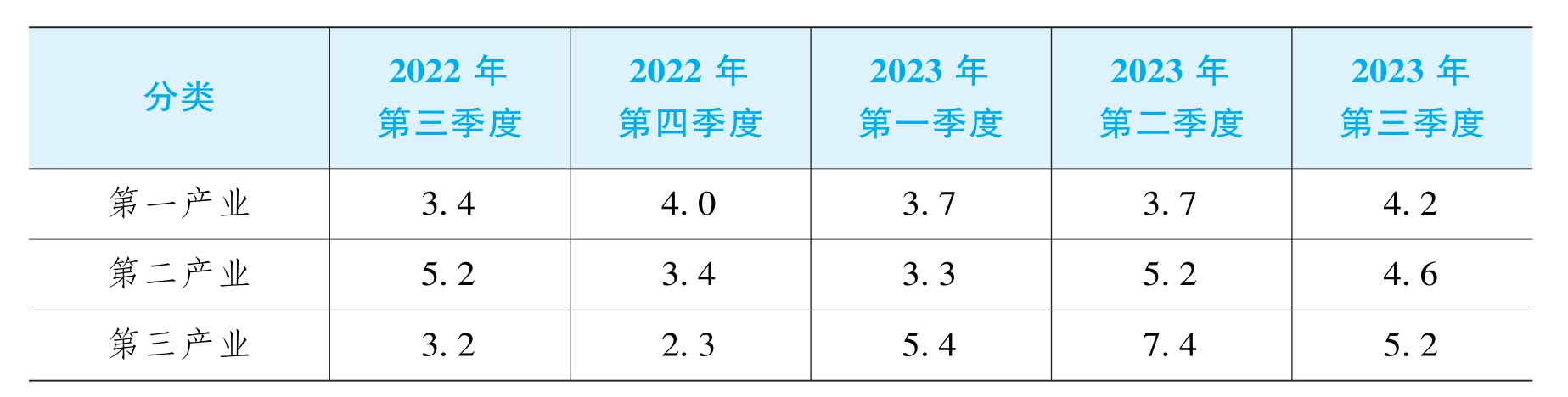 表1-3 2023年前三季度产业增加值当月同比增速季度数据 (%)