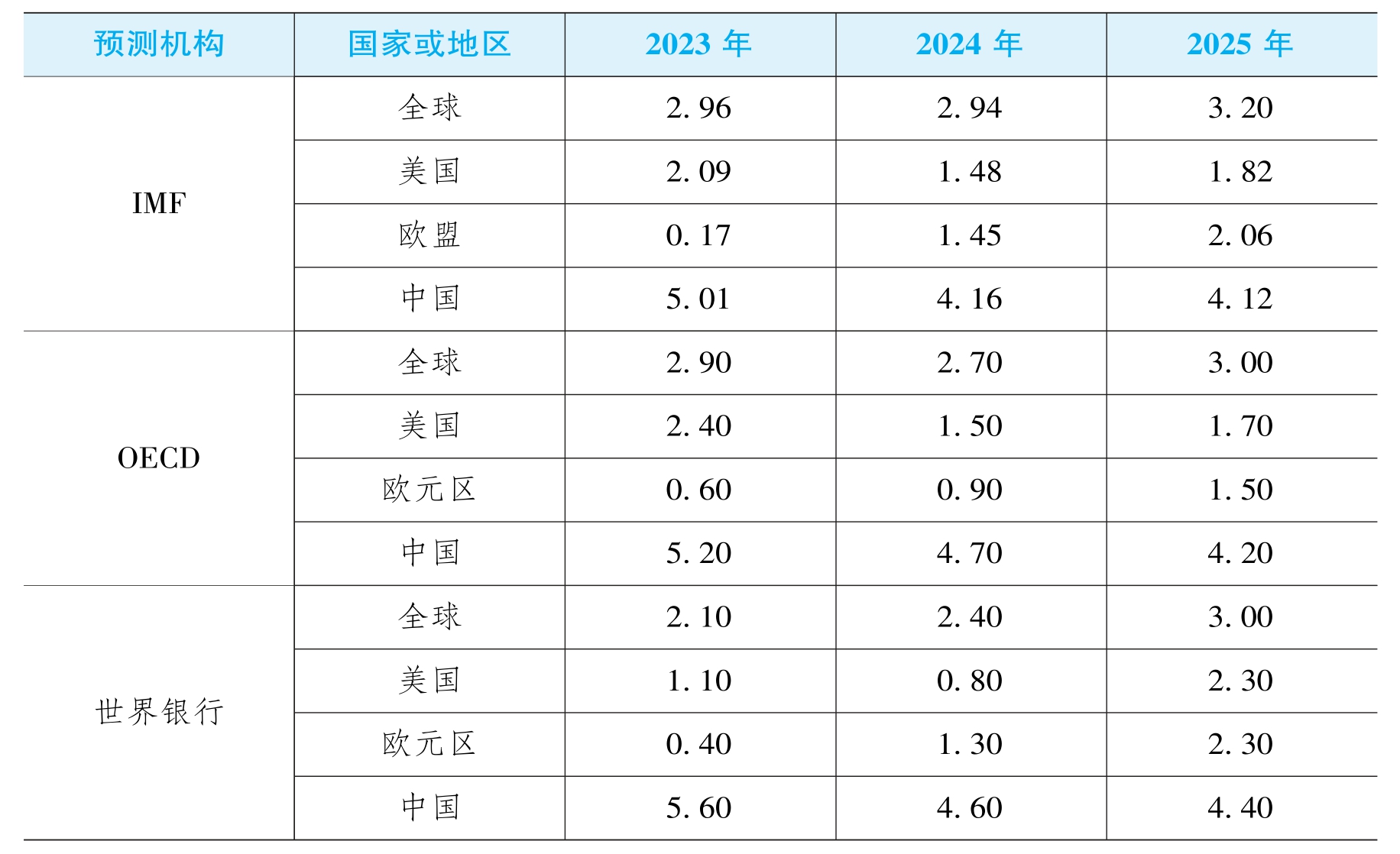 表1-4 国际机构对2023—2025年全球经济增速的预测 (%)