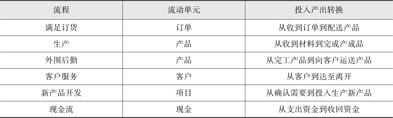 虽然不同层级的人员观察流程的范围不同:有的人员处在管理高层,会从较高的层面甚至全局来观察流程;而有的人员处在操作底层,观察到的流程可能只是某几道工序,甚至某一道工序。但他们观察的对象都是流动单元,流动单元会流过流程的全部或者部分工序。由于不同层级的人员关注的范围不同,所以他们通过关注自己负责的流程来认识其输入率和输出率、库存、流转时间、转换成本和质量。