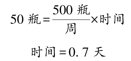 利用利特尔法则,店里的库存是50瓶,销售率是每周500瓶。