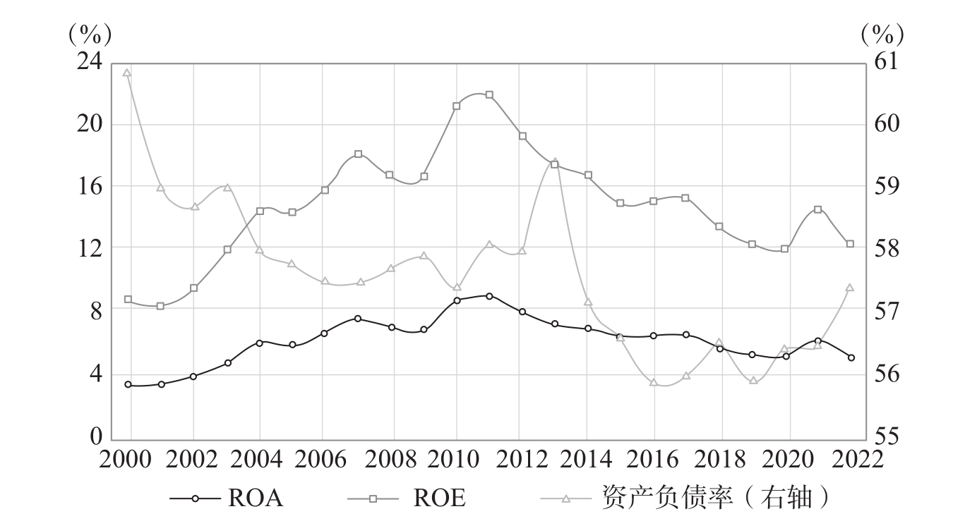图2-5 全国规模以上工业企业ROA、ROE和资产负债率情况