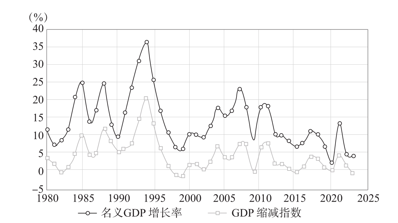 图2-6 我国名义GDP增长率和GDP缩减指数情况