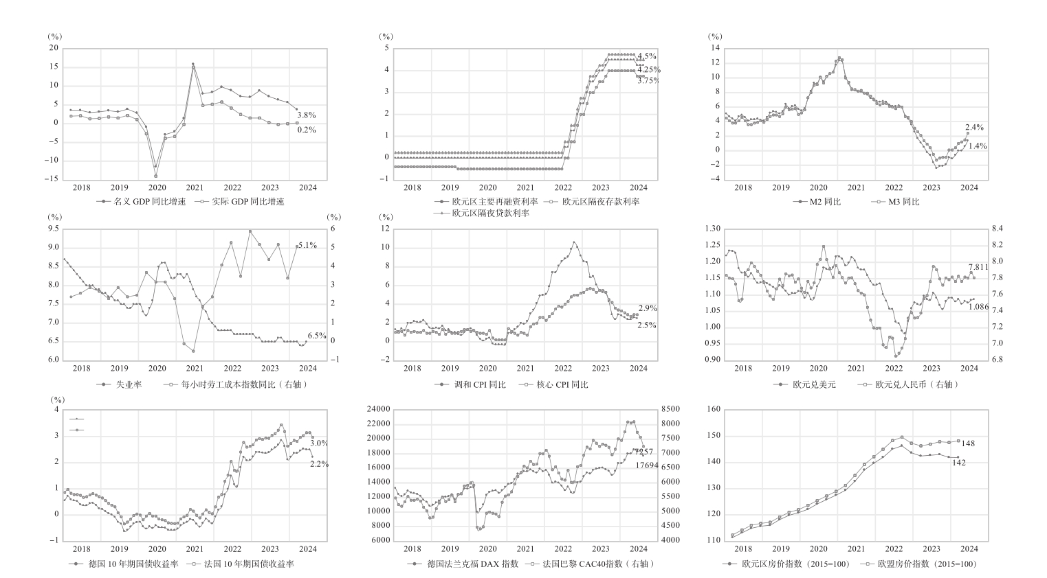 资料来源:欧盟统计局、欧洲央行、巴黎证券交易所、德国证券交易所。