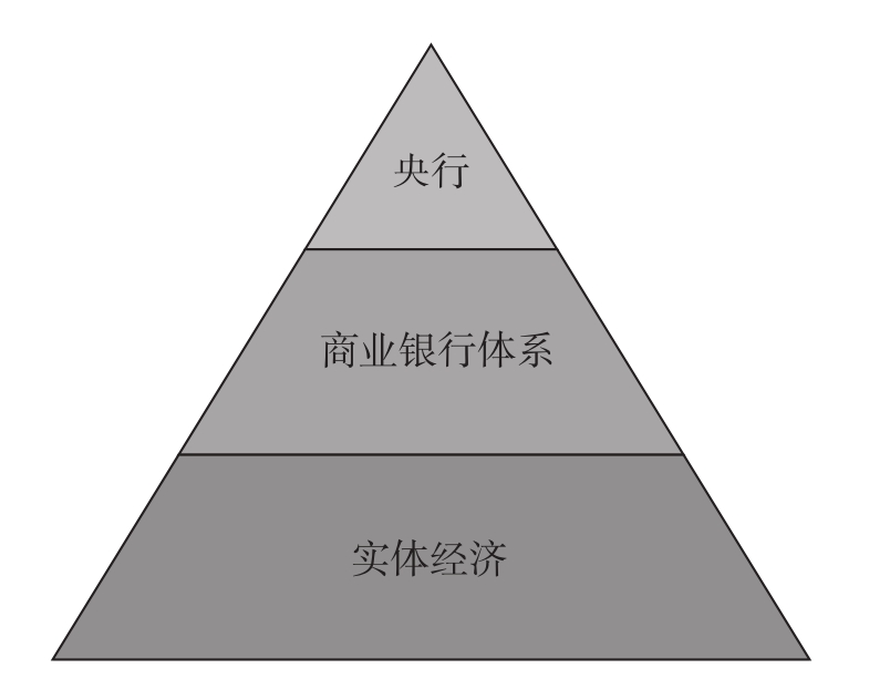 中央银行货币政策调整对经济运行有重要影响。在没有政府干预的理想市场经济中,经济周期的自发调节主要依赖于内生的货币供给机制。在这种机制中,货币增长率和利息率发挥着重要作用,它们紧密联系着资本存量和收入流量的相对价格。在封闭经济情形下,企业利润率近似等于货币增长率减去利息率。当货币增长率高于利息率时,企业有正的利润率,投资有利可得,名义经济增长,资本存量价值上升,经济正常循环。若货币增长率低于利息率,企业则普遍亏损,投资信心不足,名义经济增长放缓,资本存量价值下降,经济循环受阻。现实中,现代信用货币创造是在二级银行体系下进行的,即央行向商业银行体系投放基础货币,商业银行以基础货币为锚,通过向企业和居民提供融资,实现广义货币的派生(见图1-4)。央行对货币供给具有非常强的控制力,尤其是在美欧深度实践现代货币理论(MMT)的当前,它的取向变化会直接影响内生的货币供给机制,进而影响企业决策、资本存量价值以及经济周期运行。实践中,中央银行常采取“逆周期”调节的方式来应对经济过热或过冷,即经济过热时,采取加息等紧缩性货币政策,而经济过冷时,采取降息等扩张性货币政策。但笔者认为,这种“逆周期”的调节方式可能会有顺周期的效果,因为在没有政府干预的市场经济中,经济过热时,由于货币供不应求,利息率是上升的,而经济过冷时,由于货币供大于求,利息率是下降的。中央银行加息过慢或降息过快,反而会延长繁荣周期或缩短衰退周期。