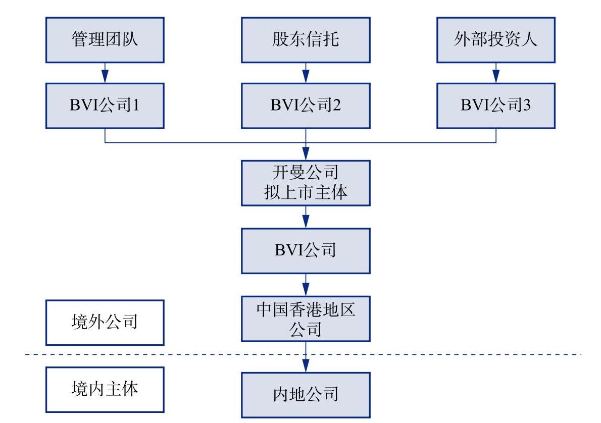 第二层由BVI公司投资成立开曼公司,这里监管相对严厉,资本市场的认可度更高。