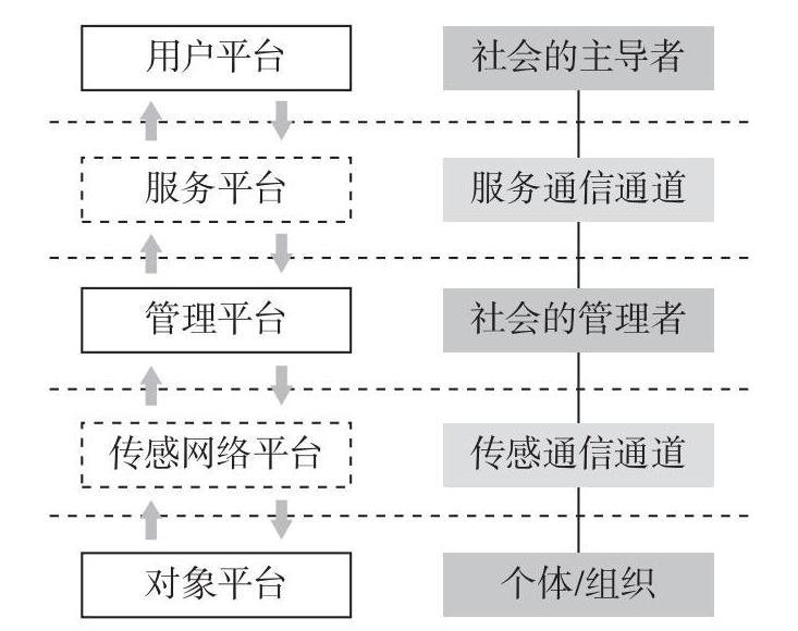 社会是众多个体广泛联结的人类命运共同体,亦是一个巨大的物联网,其结构如图6所示。在社会这一物联网中,社会的主导者为用户平台,社会的管理者为管理平台,社会中的每个个体或组织为对象平台。