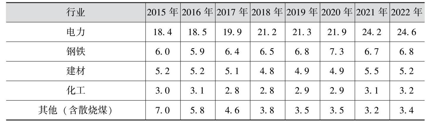 表1-1 2015—2022年我国主要行业煤炭消费情况 单位:亿吨