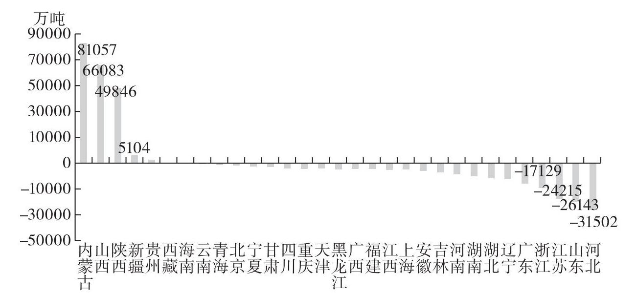 图1-3 2022年我国各省(区、市)煤炭净调出量统计